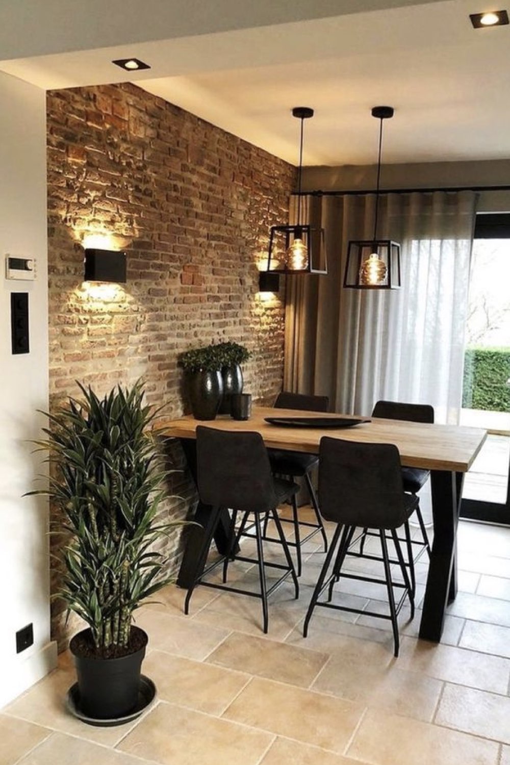 Un mur en pierre ou en brique pour un cachet authentique dans la salle à manger