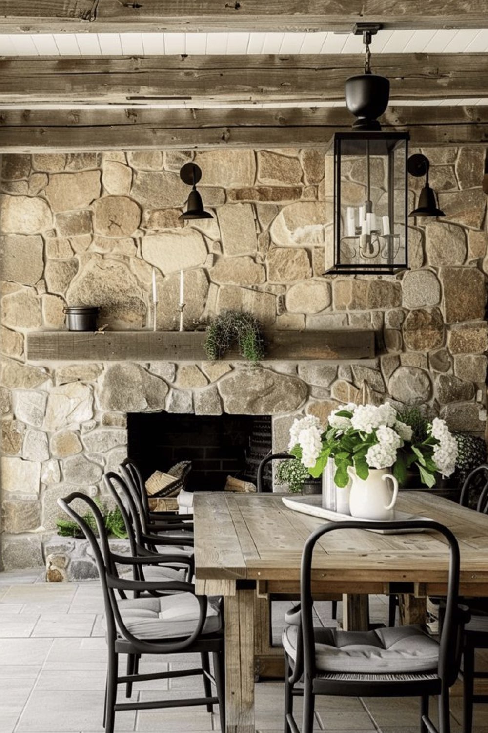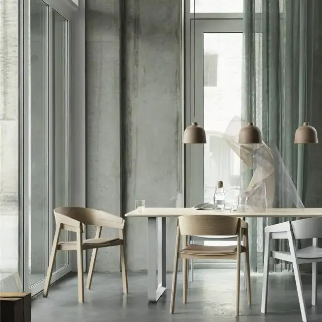 Les matériaux présents dans la salle à manger contribuent à la décoration