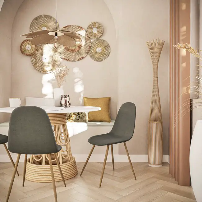 - Les matériaux présents dans la salle à manger contribuent à la décoration