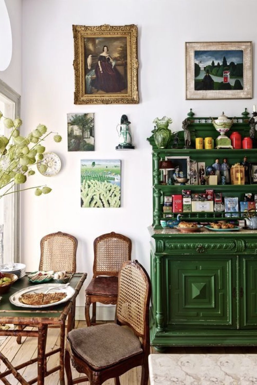 Buffets et enfilades ne sont pas les seuls choix qui s'offrent à vous. Il est possible d'opter pour un vaisselier qui est un meuble plus imposant visuellement composé généralement de deux parties: des rangements cachés par des portes dans sa partie inférieure et des rangements ouverts dans la partie supérieure. Cette partie peut être vitrée mais ce n'est pas une obligation. Comme pour les chaises, c'est un élément qu'il est assez facile à trouver de seconde main. Le vaisselier peut être fonctionnel et esthétique quand il est relooké.