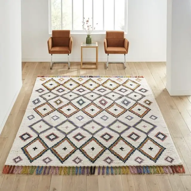 Un autre accessoire textile qui peut trouver sa place dans votre pièce à vivre est le tapis. Généralement il est placé sous la table. Il a différents avantages: Il délimite l'espace repas, il réchauffe l'atmosphère et peut être source de couleurs. Mais comme j'aime les intérieurs faciles à vivre, je me demande si un tapis sous une table où l'on prend ses repas est vraiment une bonne idée. Entre les miettes et les éventuelles tâches, l'entretien de ce tapis doit être pris en compte.