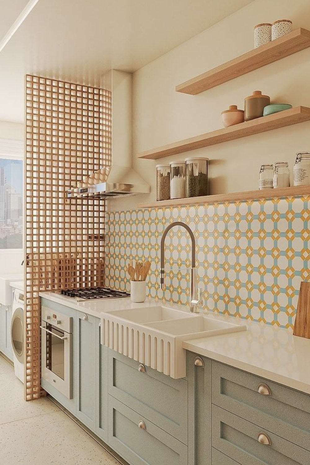 Pour illustrer mes propos, j'ai pris l'exemple de carreaux de ciment pour créer une crédence de cuisine. Il est possible de créer un soubassement ou encore un mur entier.