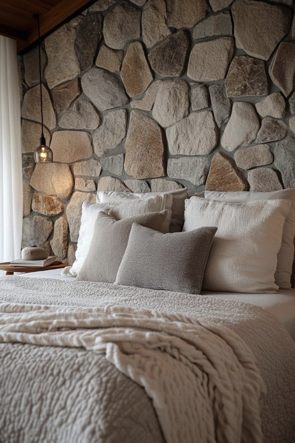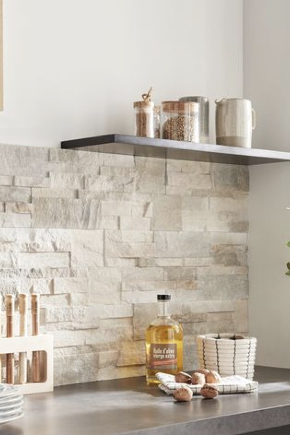 C'est un revêtement qui a un fort impact visuel, il est donc conseillé de ne couvrir qu'une partie de la pièce et de l'associer avec un autre matériaux (comme une peinture ou du bois). La différente nuance de pierre est intéressante.