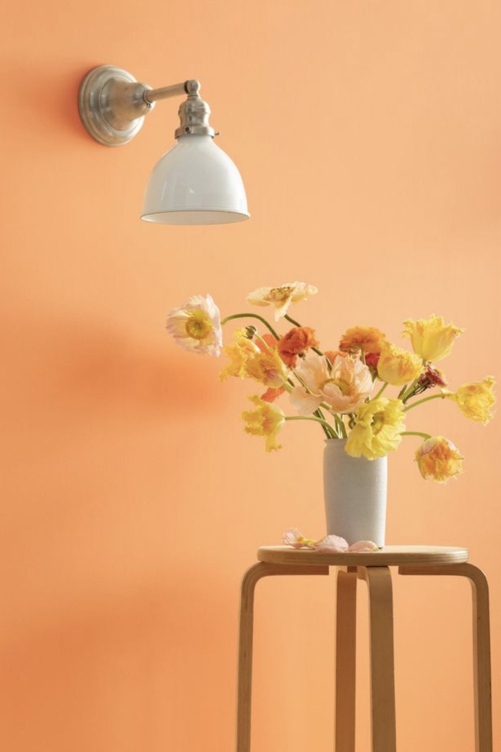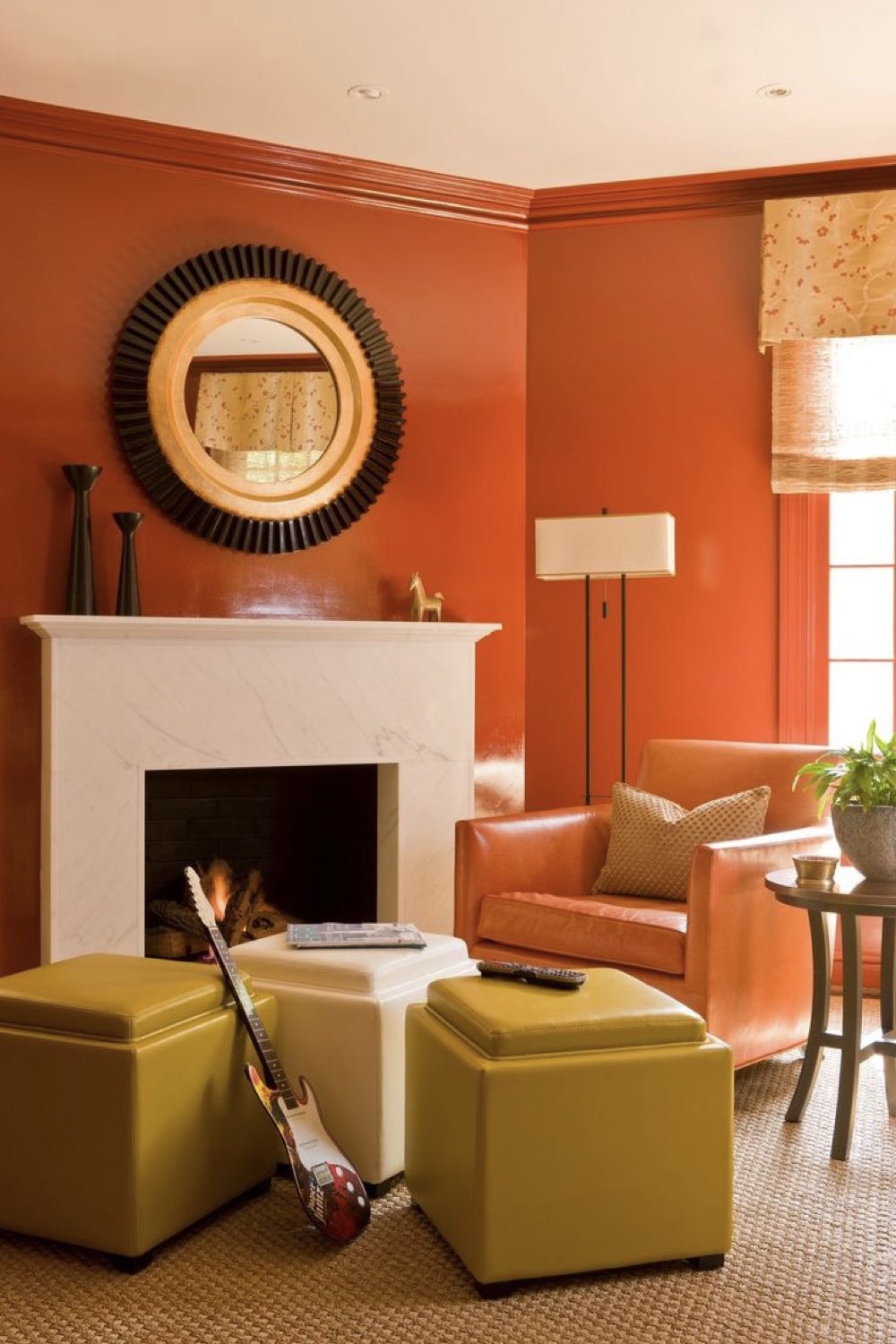 - Dulux Valentine: Orange Sanguine (chaleureux et enveloppant), Mandarine (intense) et Safran 8