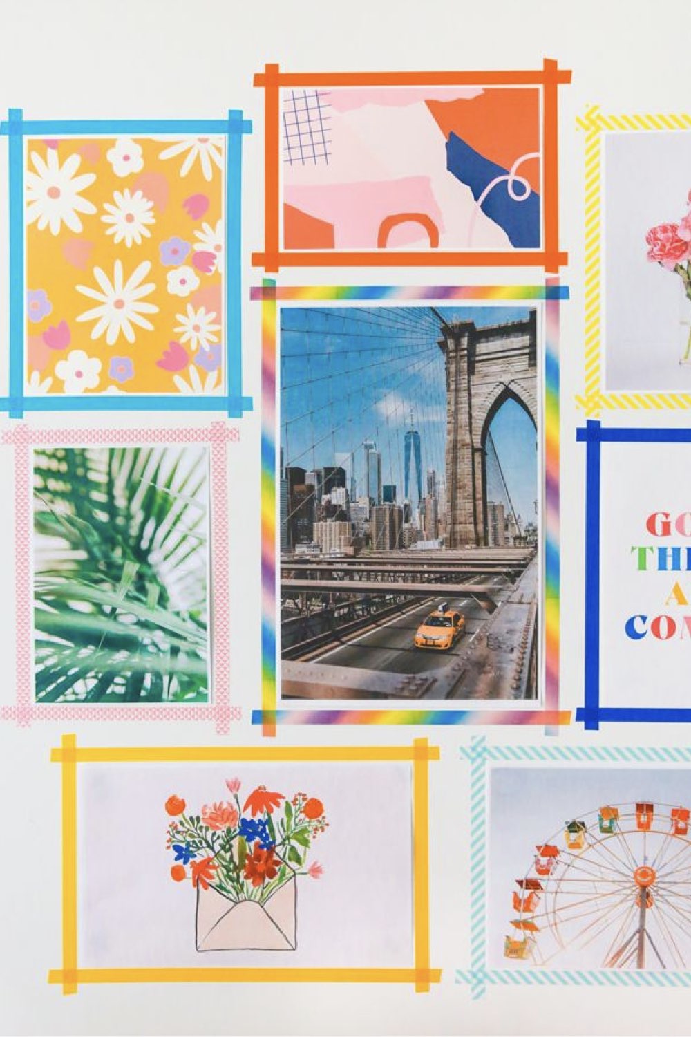 J'aime beaucoup l'idée de masking tape. C'est une solution qui est accessible financièrement mais pas seulement. Le masking tape n'abime pas la peinture au mur (contrairement au scotch transparent classique). Avec le masking tape, les possibilités n'ont pas de limites. On peut juste coller un bout de ruban adhésif sur le dessin pour l'accrocher. On peut aussi utiliser le masking tape pour créer un encadrement coloré et ludique.