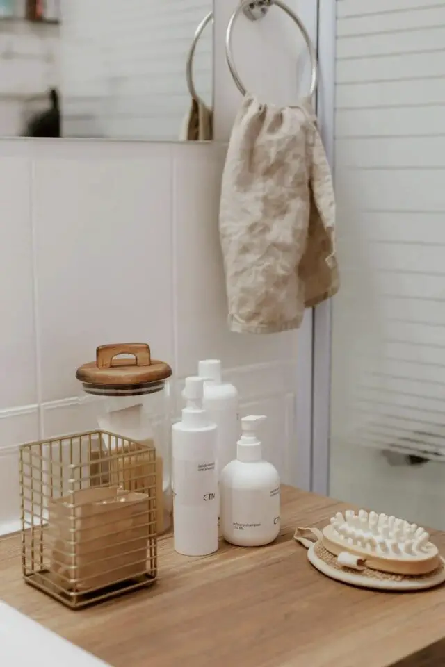 - Salle de bain: Ranger les étagères et les produits qui trainent, mettre à laver les draps de bain, trier les produits cosmétiques qui sont périmés / trier l'armoire à pharmacie.