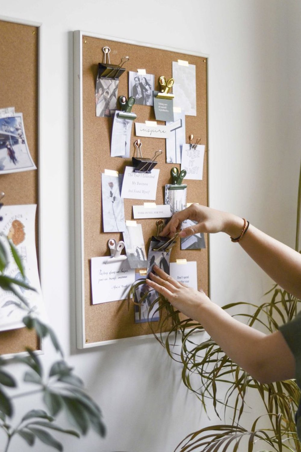 Il ne suffit pas de faire un vision board et de le laisser dormir dans un coin ou dans un placard. L'intérêt de ce type de support créatif est d'être visible au quotidien comme un rappel du pourquoi vous faites telle ou telle choses. Ce tableau personnel peut donc trouver sa place à différents endroits de la maison: