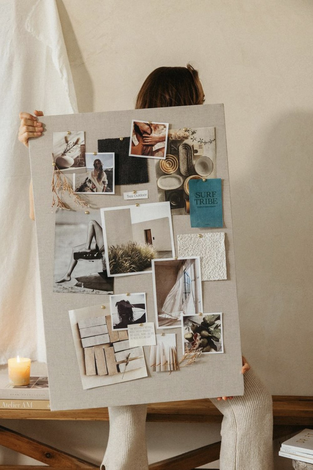 - un support (moodboard, panneau en liège, planche de MDF ou encore un pan de mur)