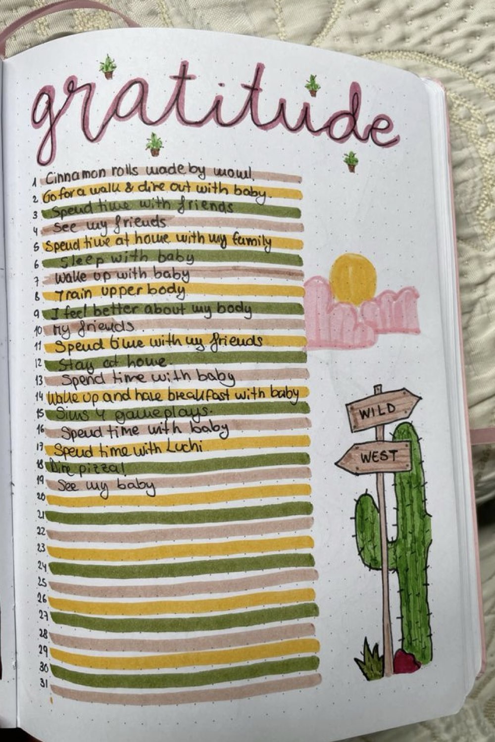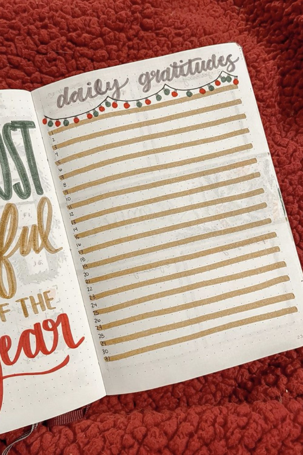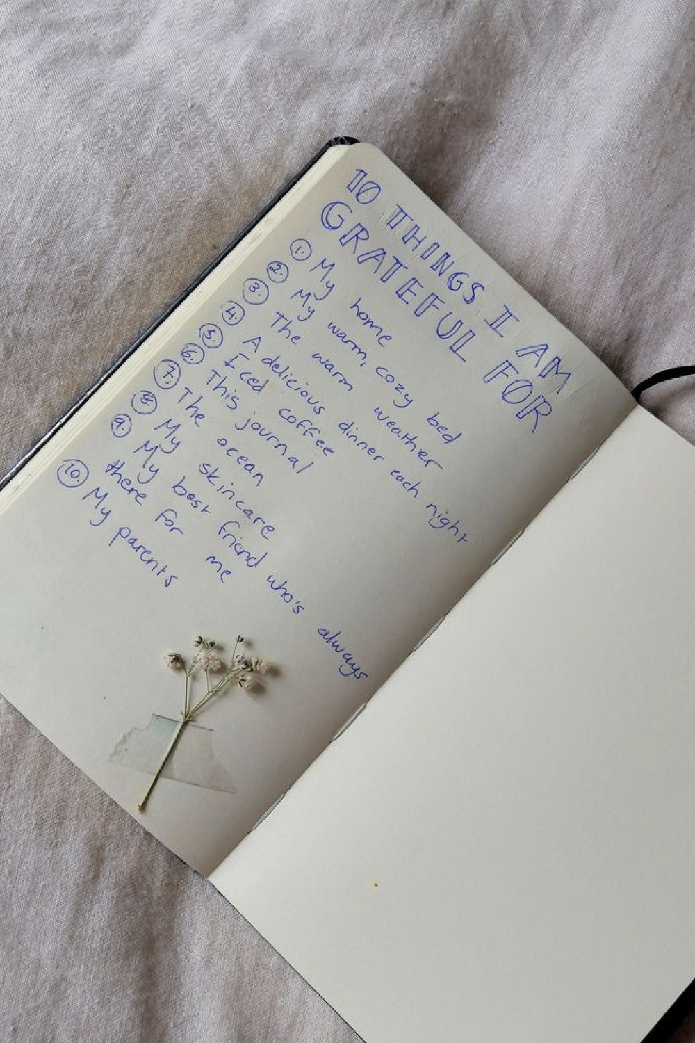 C'est un journal dans lequel on note régulièrement les petites choses pour lesquelles on est reconnaissant•e. C'est une manière de prendre du recul sur ce qu'il se passe au quotidien et de garder une trace de ce qui est positif.