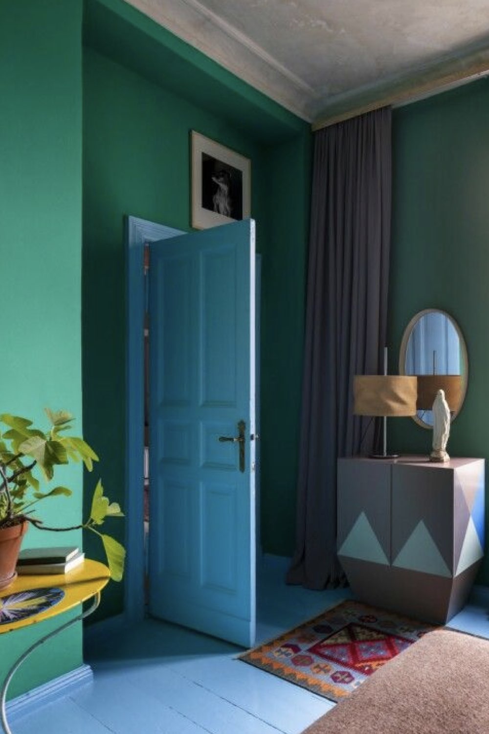 Une petite touche de bleu dans la continuité d'une pièce à dominante verte