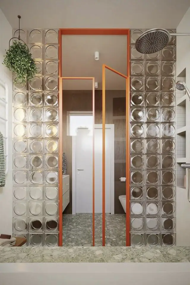 A l'instar des verrières et des claustras, les pavés de verre sont une solution alternative à la cloison intérieure classique et laissent passer la lumière. Donc, si vous cherchez à structurer un espace sans créer un effet placard / sans perdre en luminosité, le pavé de verre est une solution.