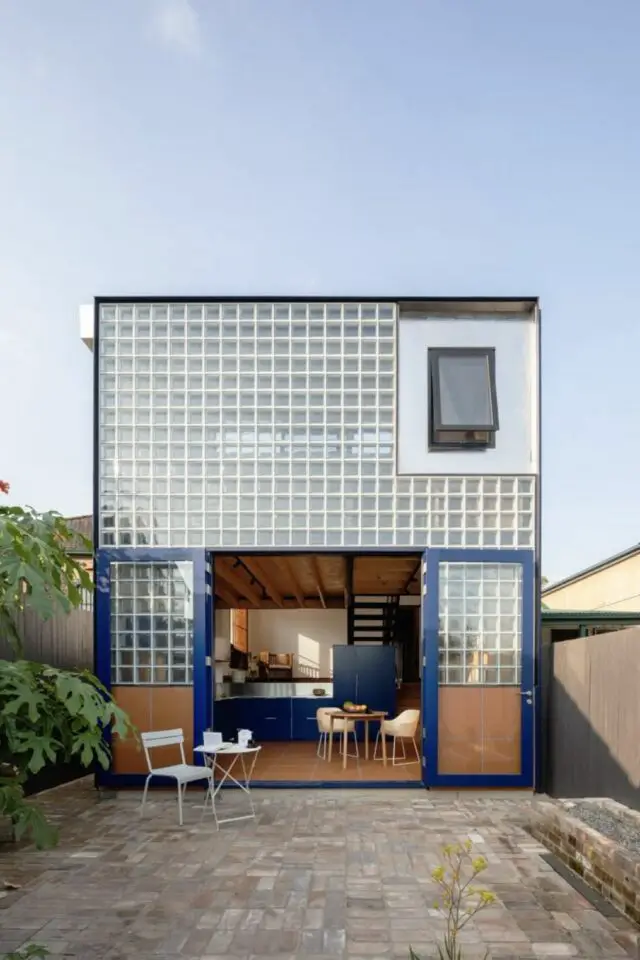 Même si cet article concerne essentiellement l'utilisation des pavés de verre en intérieur, ce matériau peut trouver sa place sur les murs extérieurs de votre maison. Il peut être source de lumière extérieure comme le serait une fenêtre ou une baie vitrée.