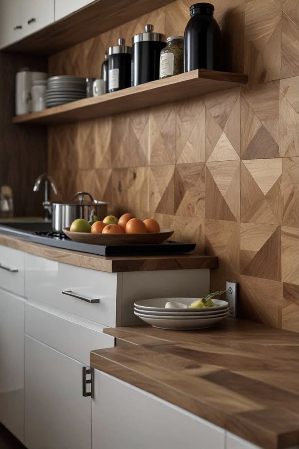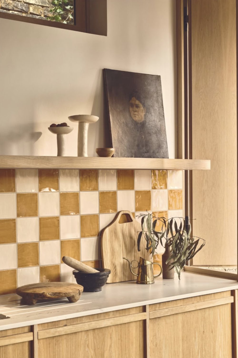 Vous pouvez aussi opter pour des revêtements qui imitent le bois. Je pense par exemple au carrelage qui vous permettra d'avoir une crédence facile d'entretien et qui sera esthétiquement chaleureuse.