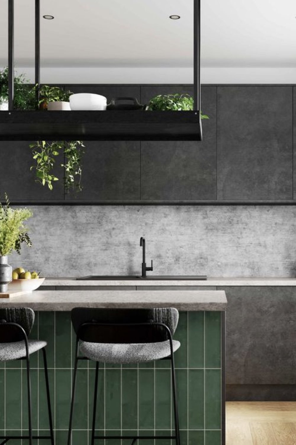 Dernier point de cet article dédié aux crédences de cuisine: l'effet béton. Il y a des stratifiés pour crédence et plan de travail qui reprennent l'effet non-uniforme du béton et du ciment. Si vous préférez un revêtement mural en béton ciré, il est nécessaire de prévoir une finition de protection pour que le revêtement soit facile au quotidien et ne s'abime pas. Esthétiquement parlant, c'est une solution qui apporte une certaine sobriété à la cuisine. Une simplicité qui me parle bien puisqu'elle décore sans être tape à l'oeil. Les crédences effet béton sont parfaites dans des cuisines de styles industriel ou masculin.