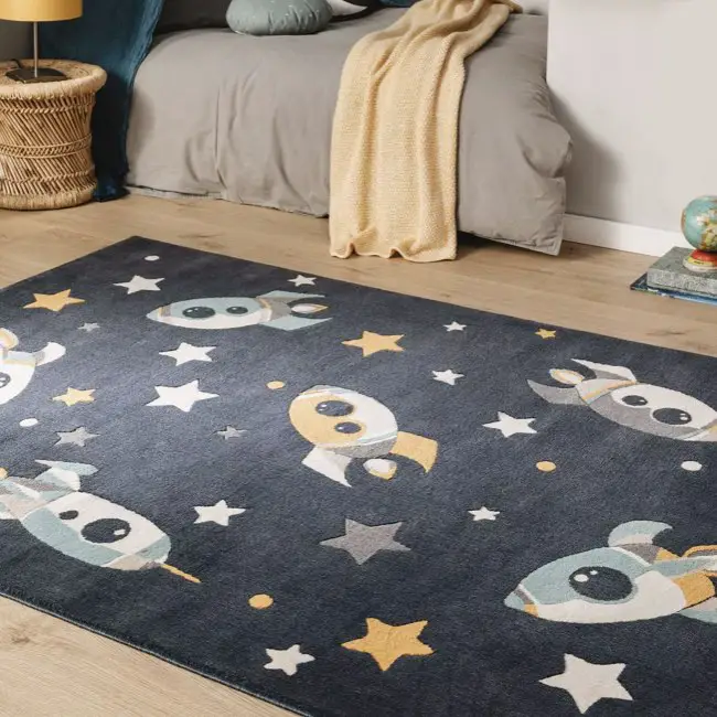 Pour les plus jeunes, le tapis peut délimiter le coin jeu du reste de la chambre. Le choix est vaste. On trouve aussi bien des tapis avec des circuits et des routes comme des modèles plus abstraits avec de la couleur. Pour les pré-ado et les ado, il est possible d'opter pour un modèle plus classique voire une descente de lit.
