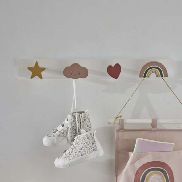 Pour parfaire la déco murale de votre kid, il est également possible d'ajouter quelques patères murales. Cela lui permettra d'accrocher son pyjama par exemple. Il y a des modèles vraiment sympas et adapté à chaque décor de chambre.