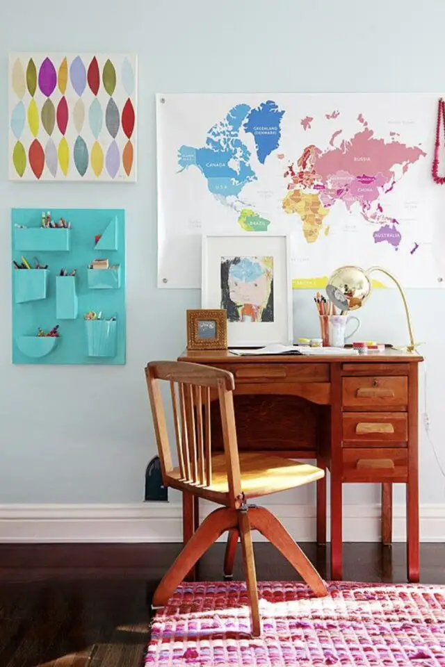 C'est un genre de déco qui est assez intemporel. La nostalgie est intemporelle. Ce sont aussi des éléments qui peuvent se trouver avec de la patience et un petit budget. Il faudra juste expliquer à votre enfant que l'URSS sur la carte n'existe plus et qu'il ne faut pas qu'il le note dans son devoir de géographie!