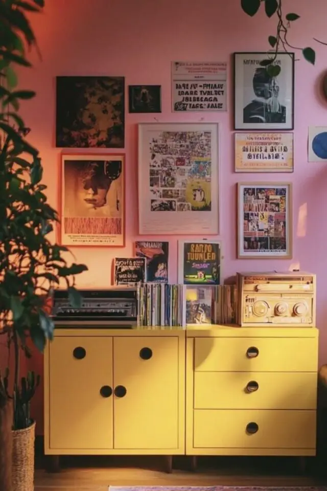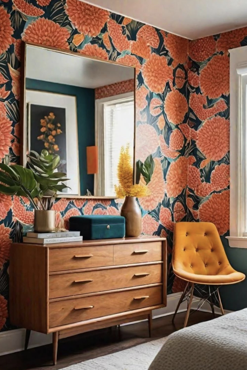 Le mobilier va jouer un rôle important dans la création de votre ambiance. Vous pouvez aussi parfaire votre déco de chambre avec du papier peint floral, des affiches rétro encadrées, des miroirs et encadrements anciens ou encore une platine vinyle... C'est un style qui ne s'achète pas réellement en magasin. Il demande du temps, d'aller sur les brocantes et laisser de la place à la chance pour trouver l'objet parfait qui correspondra à votre personnalité.
