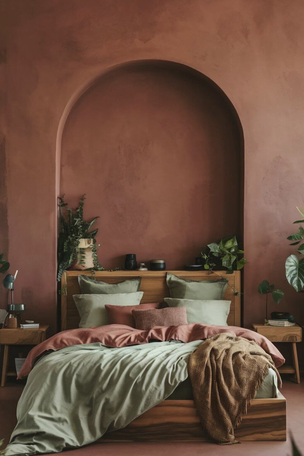 Enduit décoratif & béton ciré pour une chambre douce et feutrée