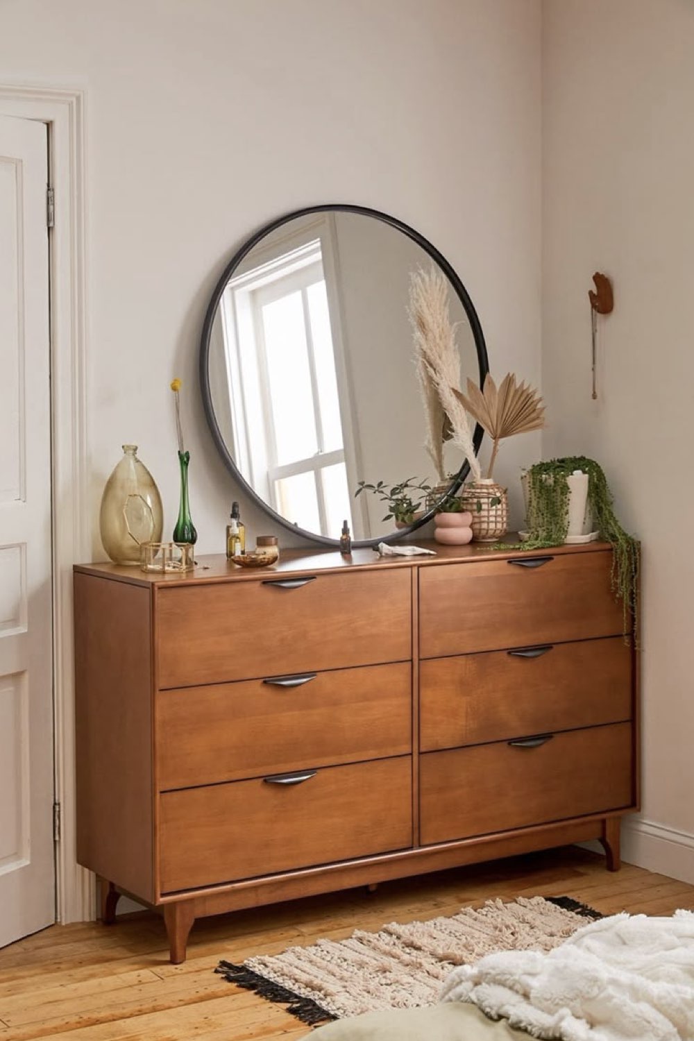 Il y a certains espaces qui semblent vides quand on les laisse nus. C'est souvent le cas de la commode et plus particulièrement le mur au dessus de la commode. C'est un espace que vous pouvez travailler pour y mettre une touche plus personnelle.