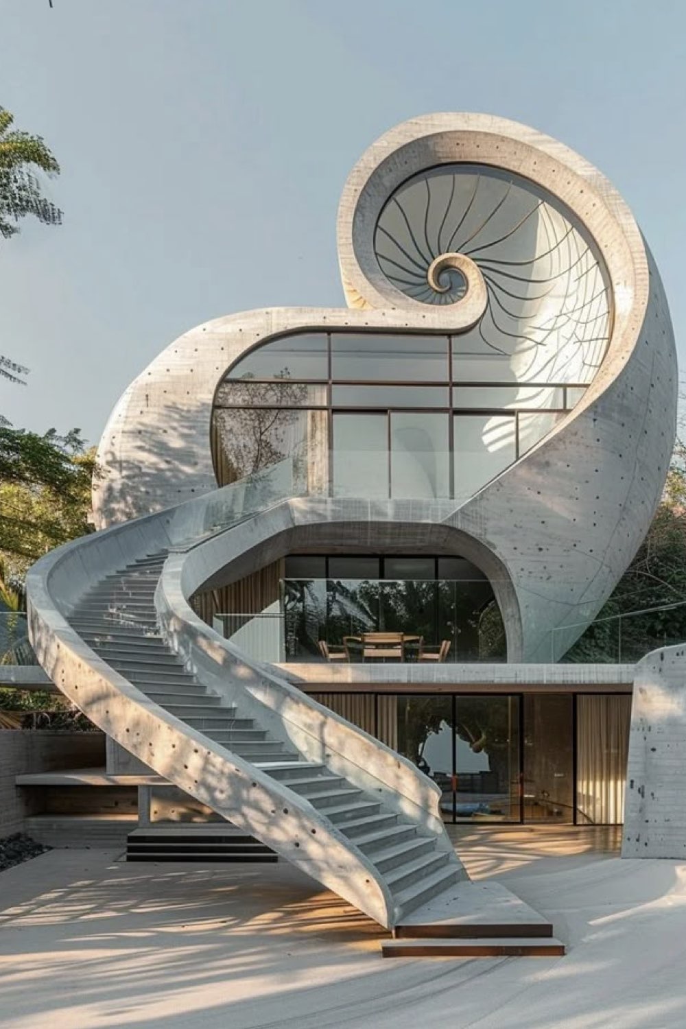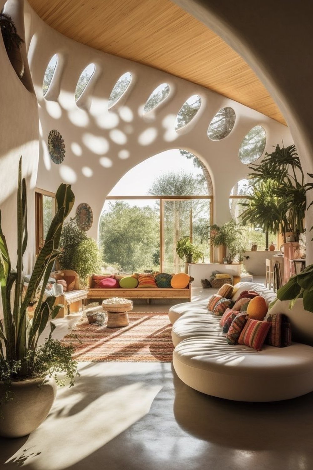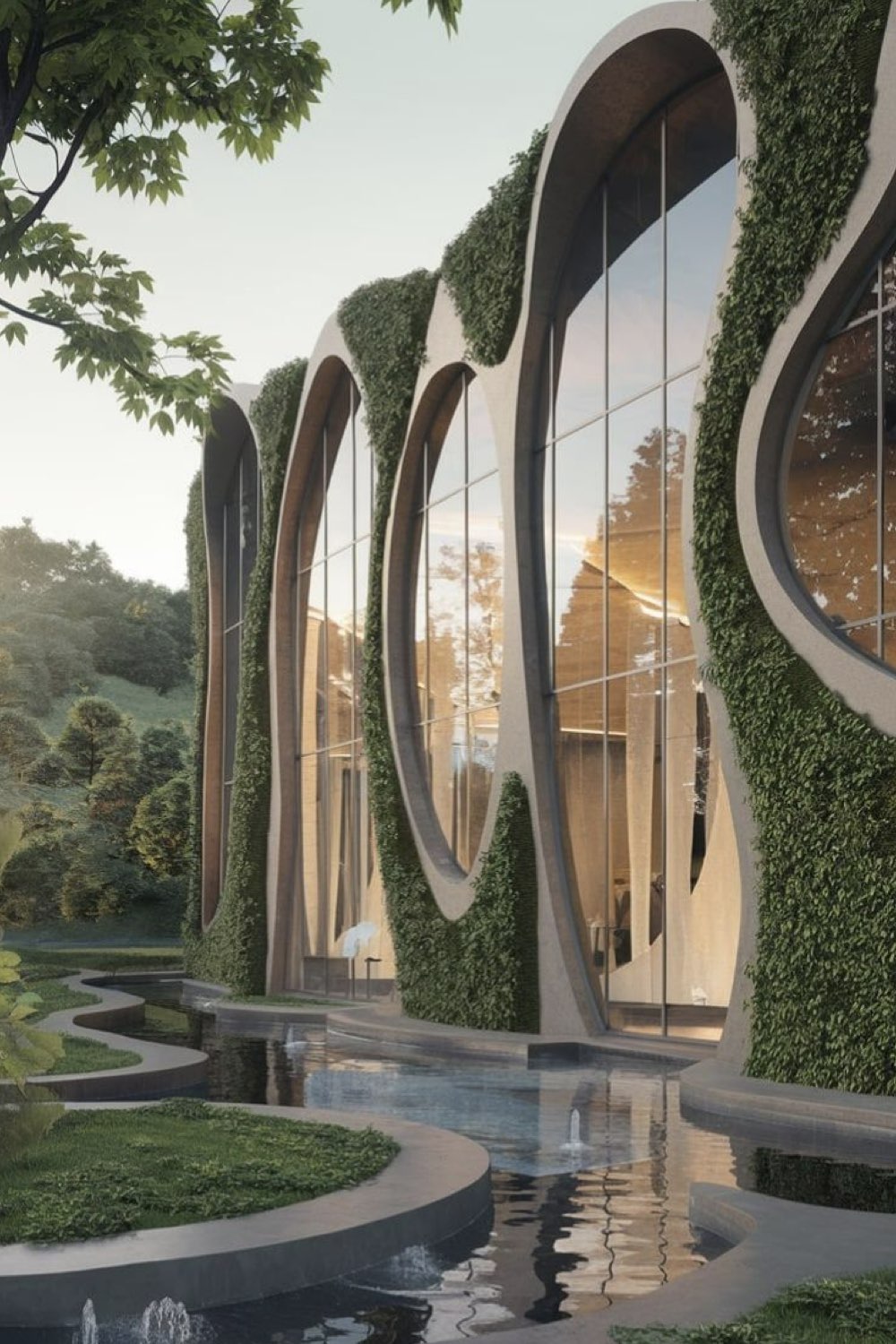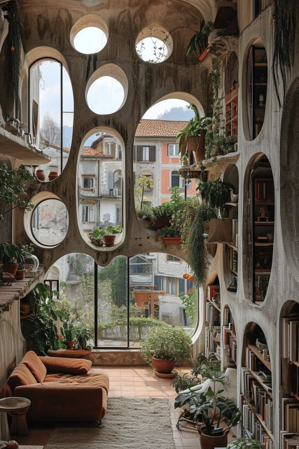 Perso, ce qui me parle dans ce type d'architecture, ce sont les formes inspirées de la nature. Des arrondis doux, une géométrie inattendue. Je médite beaucoup en regardant les plantes, il y a tellement de choses qui m'inspirent dans les plantes et leurs manières d'être / d'occuper l'espace / croitre... Et si tout cela servait de sources d'inspirations pour repenser les lieux où nous vivons (pas juste le logement, il y a aussi le bureau, l'école, le super-marché...) Est-ce que nous ne serions pas plus détendu•e•s et / ou ouvert•e•s d'esprit si ce qui nous entourait n'était pas cubique et si uniformisé?