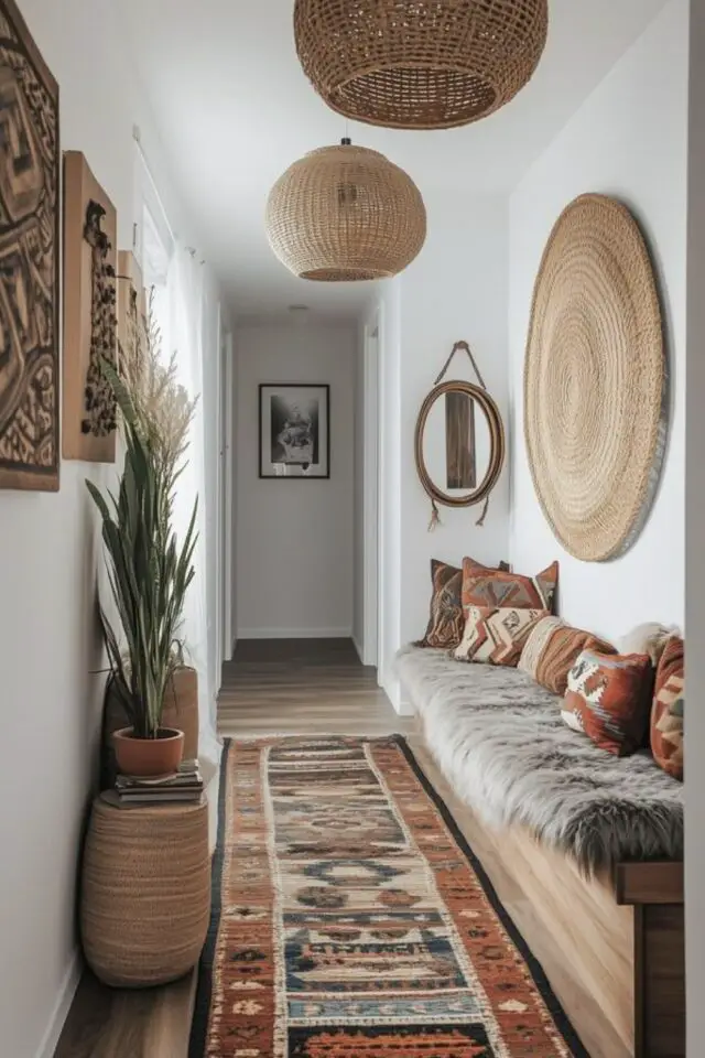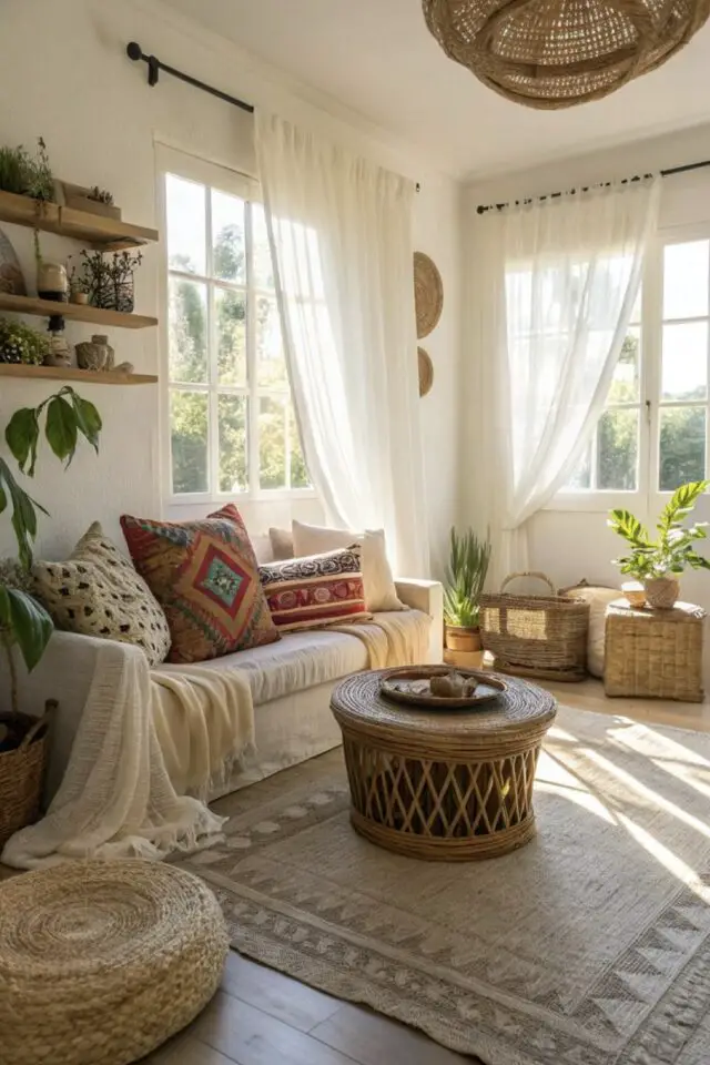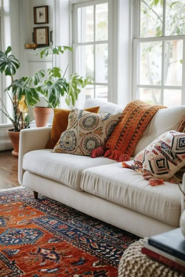 Les objets déco relatifs au style bohème sont parfaits pour créer un espace personnel. Une suspension en macramé suspendue au dessus du lit, un joli tapis oriental au pied du canapé sous la table basse, une suspension naturelle au dessus de la table de salle à manger... et j'en passe. Les possibilités sont vastes et c'est nickel dans notre recherche de mix & match de styles. Ce sont ces accessoires qui vont transformer votre base neutre et fonctionnelle.