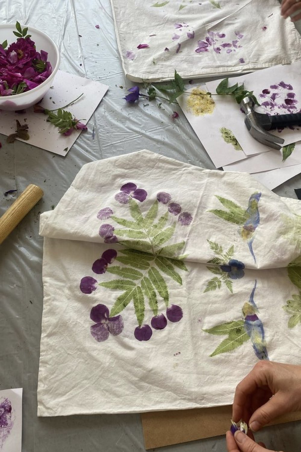 Le Tataki Zomé est une technique d'impression naturelle qui consiste à taper des feuilles et des fleurs sur un support (tissus, papiers) pour qu'elles s'y impriment. Pour la déco, ça peut être une technique intéressante pour créer: