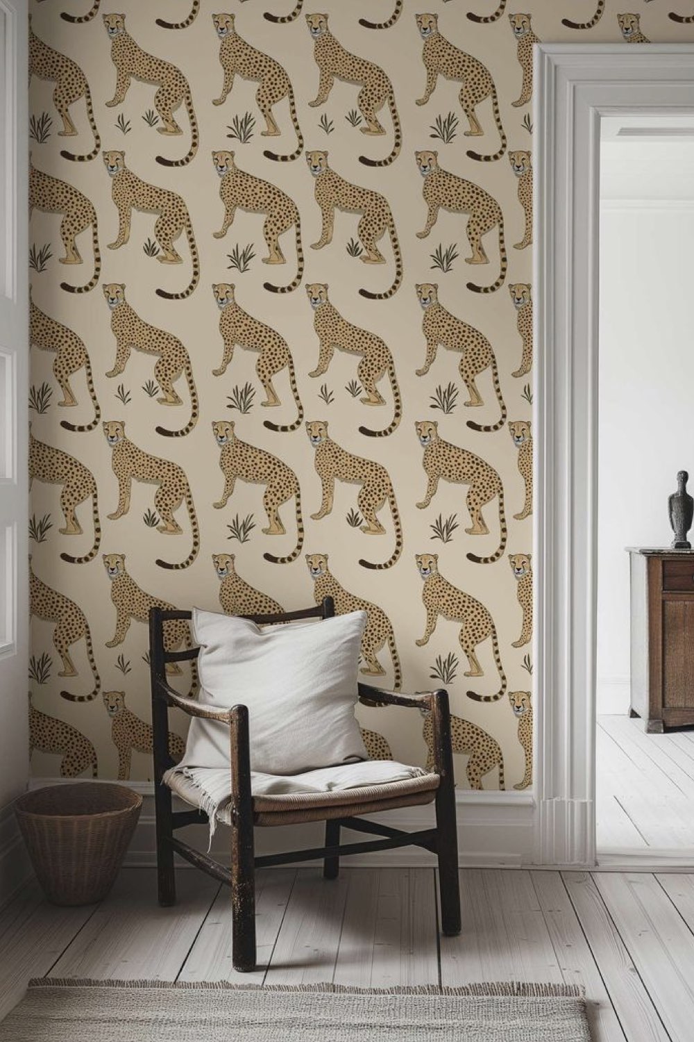La nature n'est pas qu'une question de plantes. Ce serait trop simple et sûrement trop fade. La nature, ce sont aussi les animaux et ils servent d'inspirations pour les motifs de papier peint. Il est assez facile de trouver des papiers avec un imprimé oiseaux (souvent privilégiés pour un univers printanier). Il y a des motifs plus modernes comme les guépards ou les singes. Parfois, c'est uniquement le pelage des animaux qui inspirent un motif. Je pense par exemple au motif léopard. Et puis, dans l'univers de l'enfant, il y a pléthore de choix. Mais ça j'y reviens après.