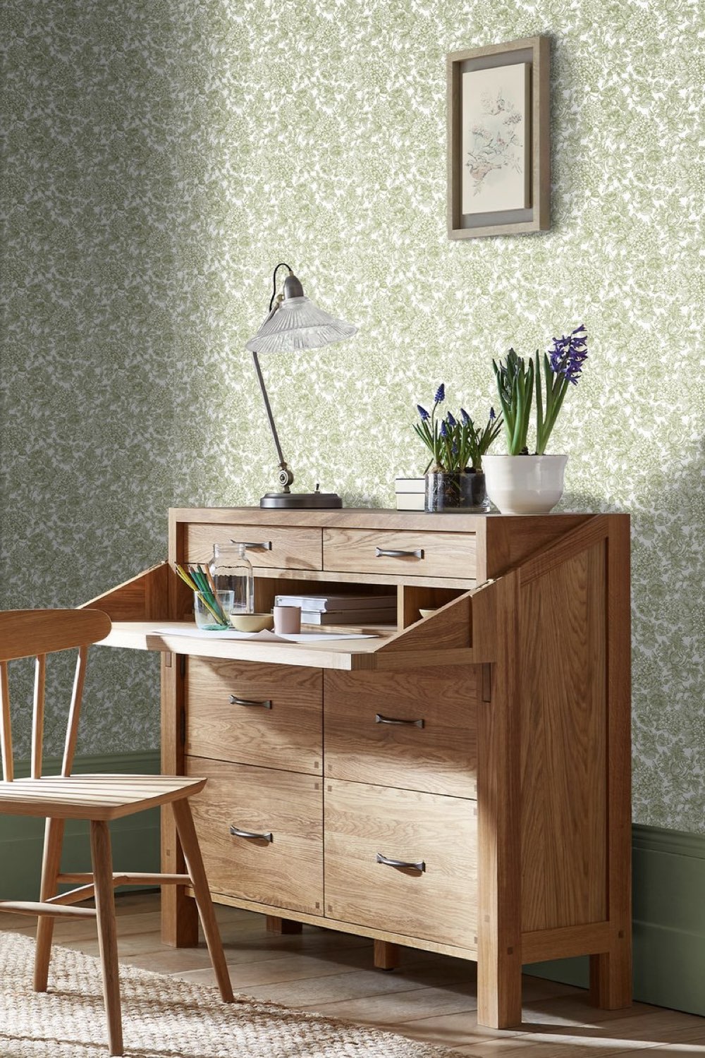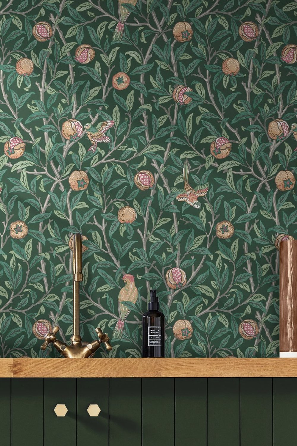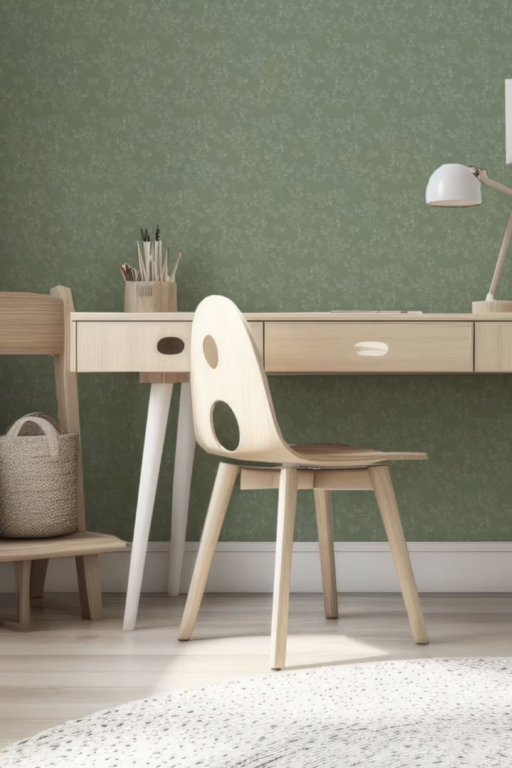 Le vert se prête bien aussi aux univers surannés. Motifs inspirés des années 70, illusion de moulure et / ou de lambris, carreaux de ciment et impressions florales inspirées de l'univers Arts & Craft. Si votre style est assez classique chic, le papier peint vert collera parfaitement à votre univers.