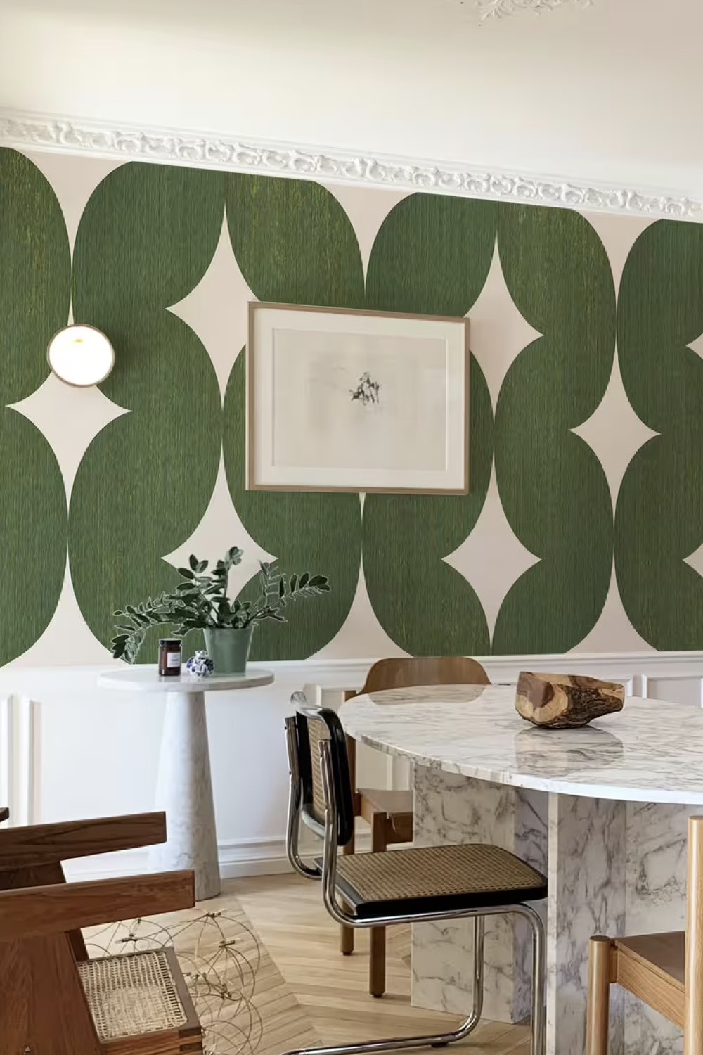 L'univers de la déco offre un vaste terrain de jeu pour exprimer sa personnalité. Si vous n'êtes pas fan des motifs végétaux, il y a d'autres solutions qui s'offrent à vous. Par exemple, on trouve facilement le vert associé à des motifs géométriques et / ou abstraits. Ce type d'imprimé est parfait pour créer une déco moderne légèrement teintée de naturel.
