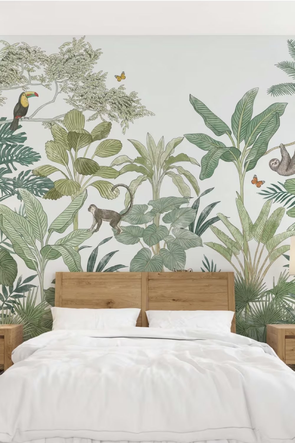 Si vous suivez le blog, vous savez que j'aime passionnément le vert. C'est une couleur qui m'apaise et qui est une bonne alternative quand je vis en ville et que la nature extérieure semble manquer. En déco, vert se trouve facilement sous forme de peinture, de textile, d'objets décoratifs. Il se trouve également sous la forme de papier peint.