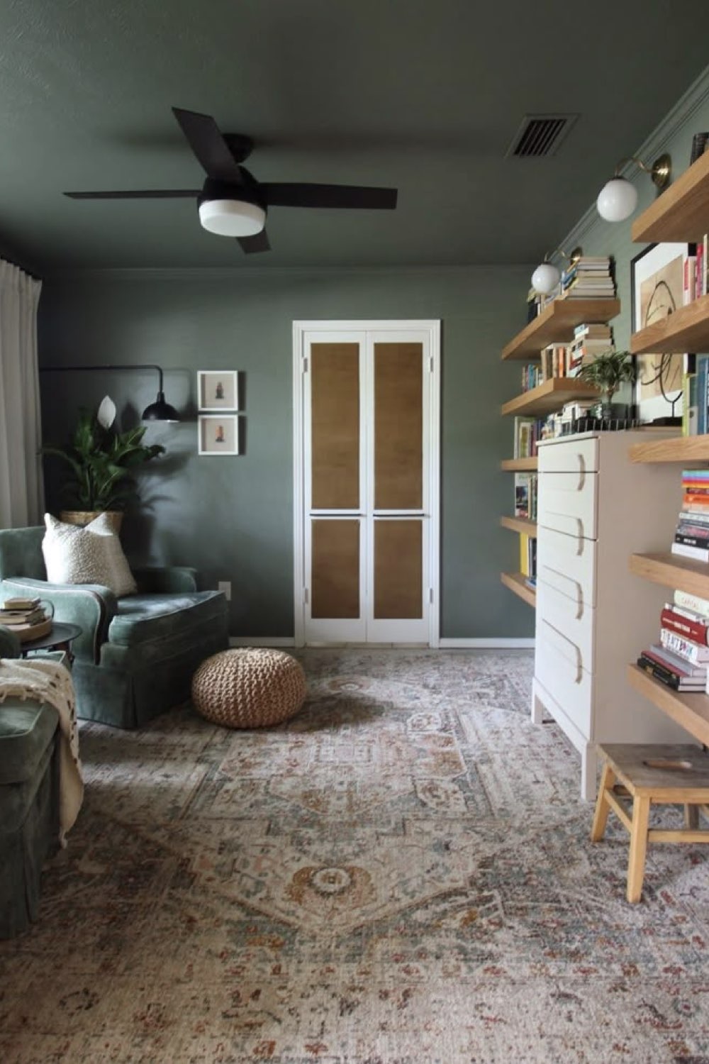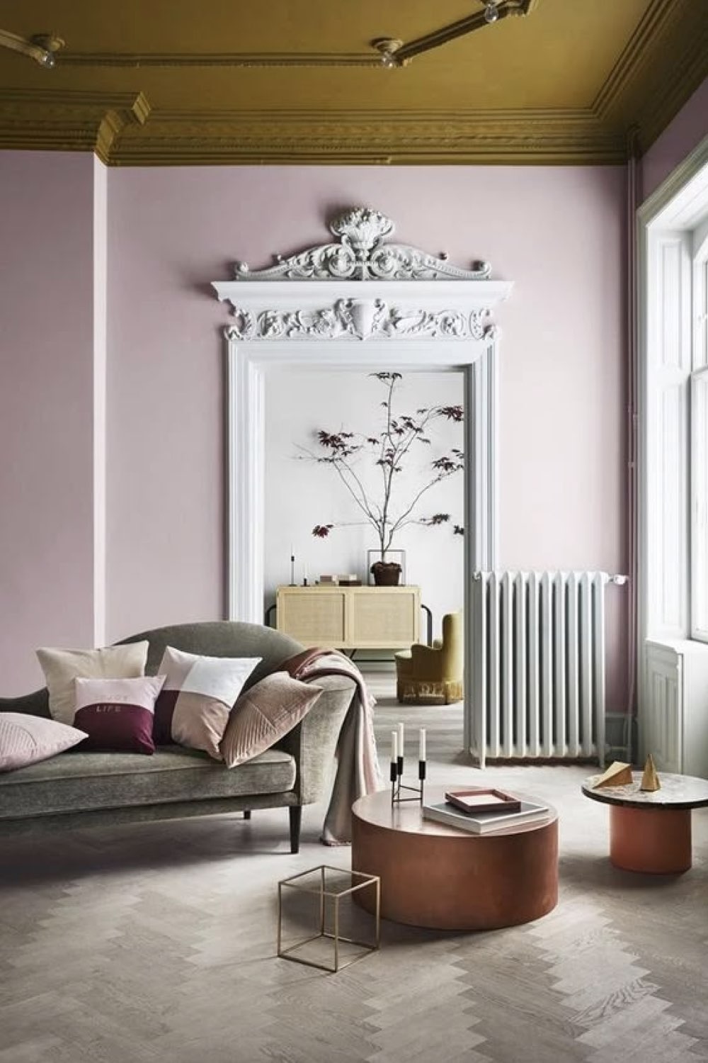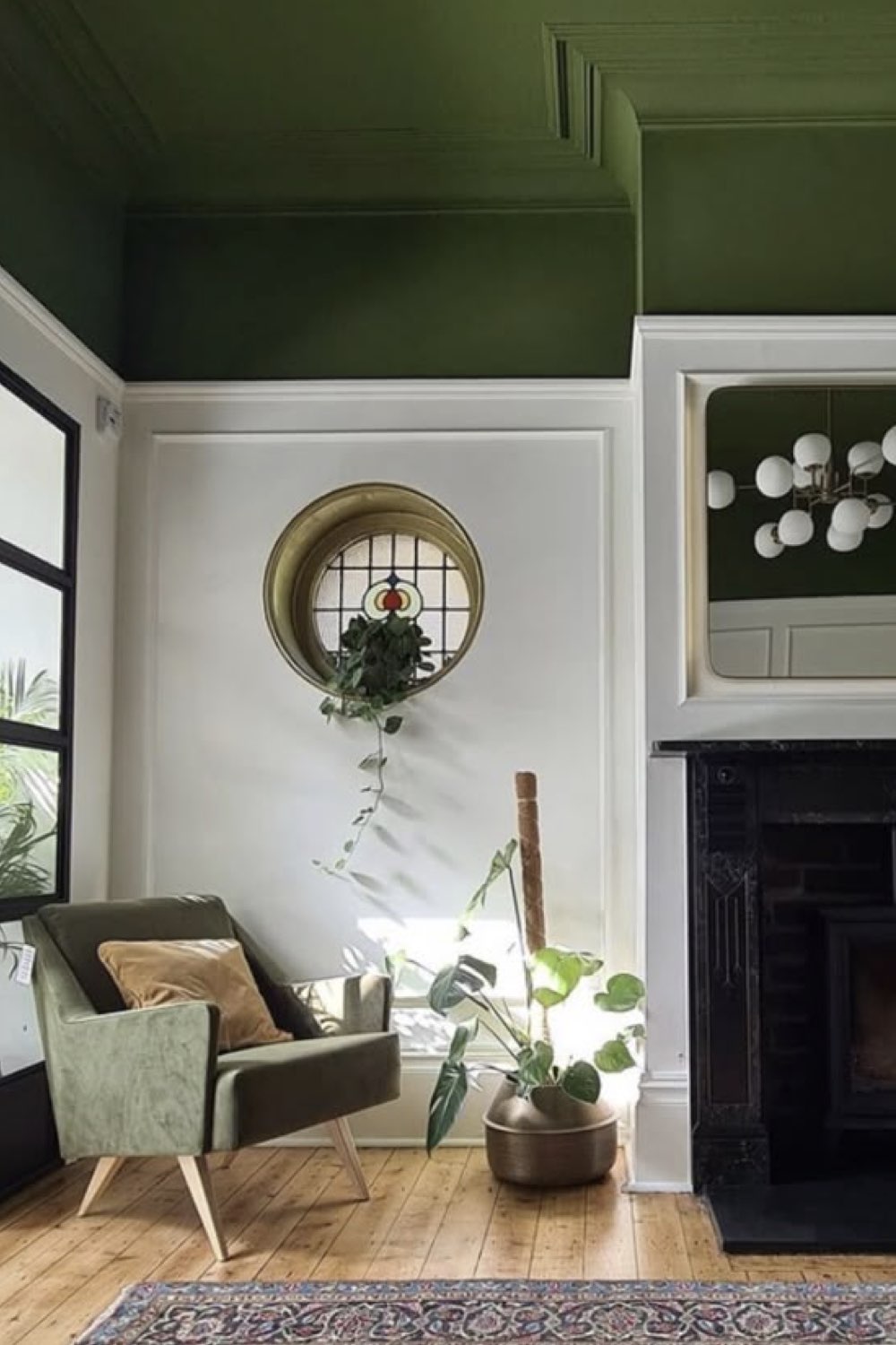 Autre possibilité: on peint tout de la même couleur. J'ai déjà évoqué ce choix en précisant que l'effet aller créer un sentiment cosy dans la pièce. La distinction entre le plafond et les murs va disparaître et créer un effet enveloppant. Avec une couleur sourde par exemple, c'est parfait pour créer une atmosphère intime.