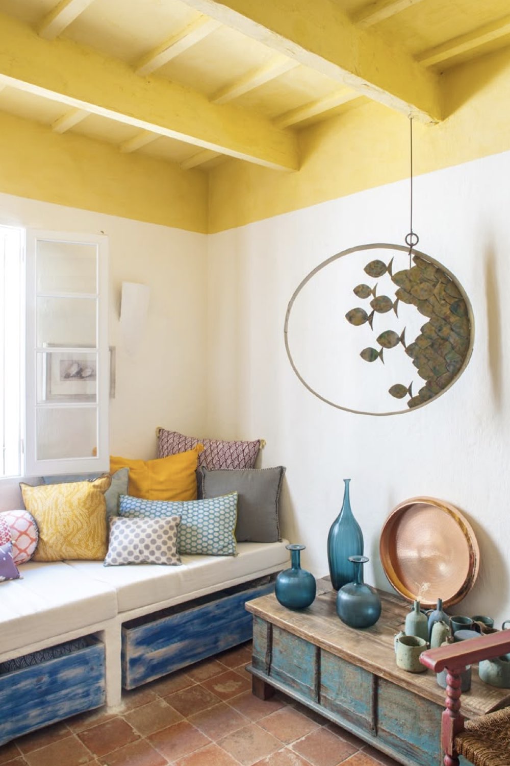 Si votre pièce avant travaux vous semble déjà trop sombre, il est préférable d'opter pour une couleur claire. C'est la même chose pour une pièce qui semble petite. En ce moment, je fais une légère fixette sur le jaune. Un jaune pâle peut être intéressant au plafond. Il ne sera pas trop fort visuellement et vous bénéficierez tout de même de son aspect solaire qui met de bonne humeur.