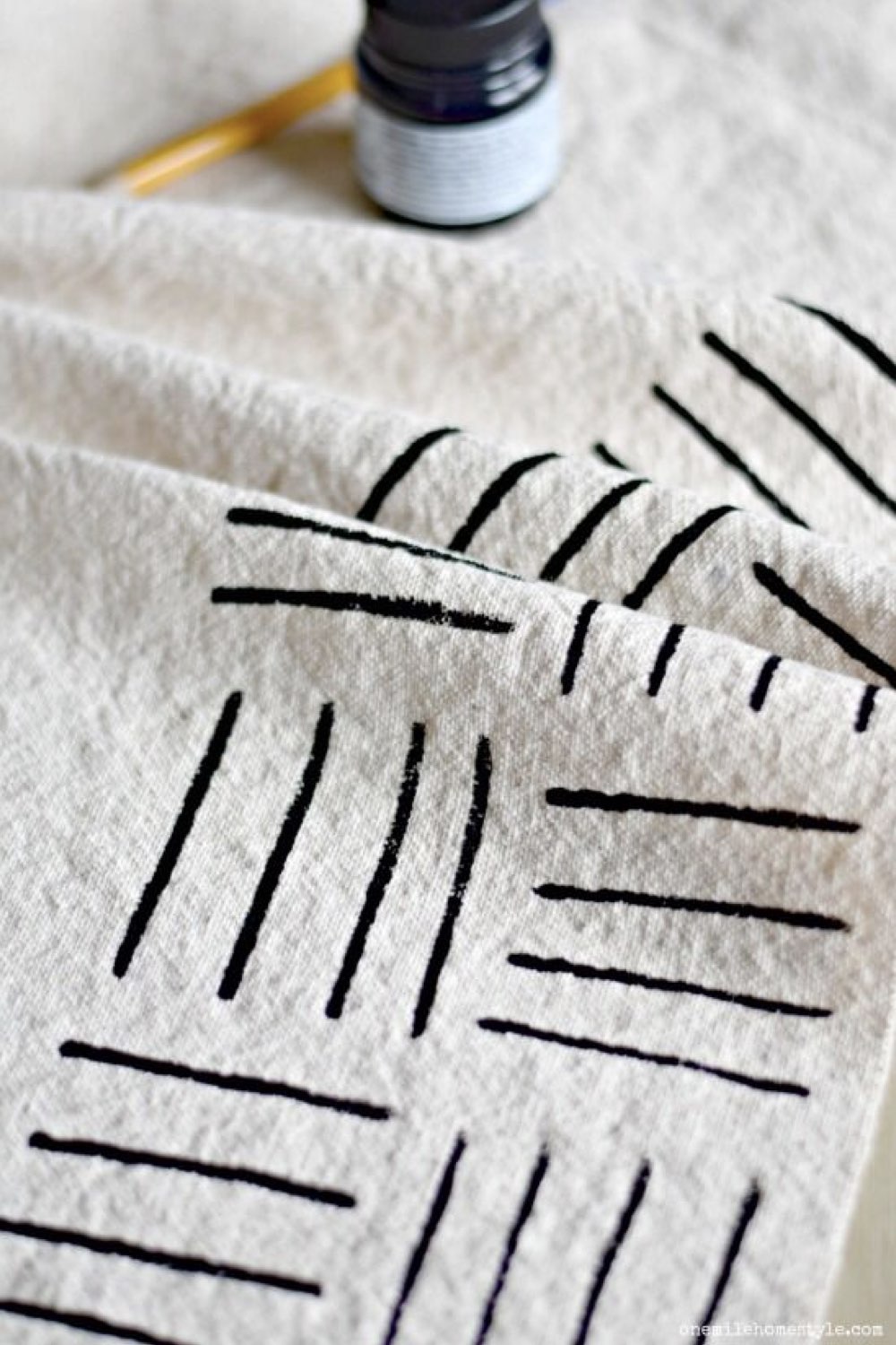 Si vous n'avez jamais fait cette technique ou si vous avez une petite surface à personnaliser (une housse de coussin), le tampon est peut-être plus adapté. Au lieu d'utiliser de l'encre, vous utiliserez de la peinture sur textile.