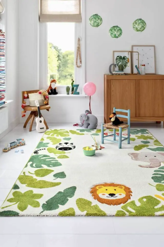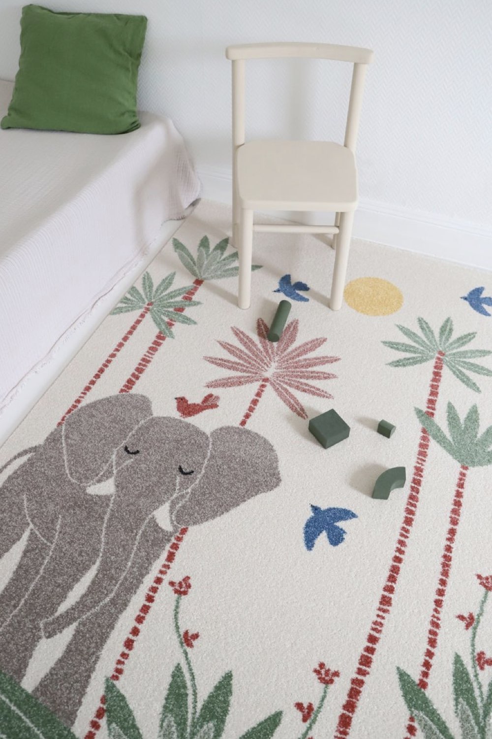 Les animaux "exotiques" sont très représentés quand il s'agit de la chambre d'enfant. Le choix est varié. On trouve le lion, le roi de la jungle. Mais ce n'est pas le seul qui peut se trouver sur le tapis. Il y a aussi des tigres, des singes, des girafes ou encore des éléphants. Ce sont des animaux qui sont très représentés dans les histoires pour enfants comme dans les dessins animés.