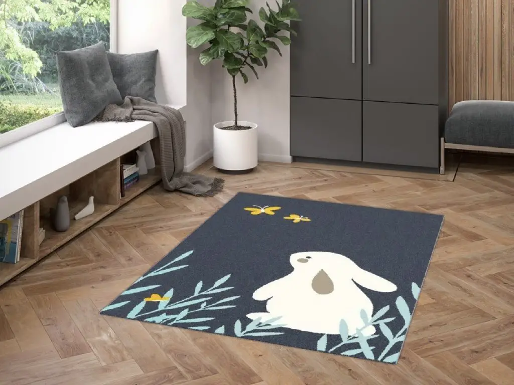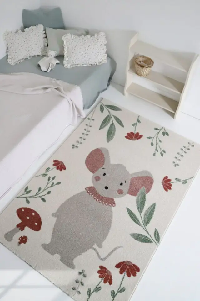 Moins exotique mais pas moins naturel, il y a le thème forêt et animaux qui vivent dedans. C'est un thème intemporel pour la chambre d'enfant. Et on le trouve décliné sous la forme de tapis. On va trouver des oiseaux, des souris, des lapins... des animaux gentils. Il est possible également de trouver des loups ou des renards, toujours dans un design tout doux et loin d'être effrayants (tant qu'à faire, c'est bien si le tapis ne file pas des cauchemars à votre enfant!)