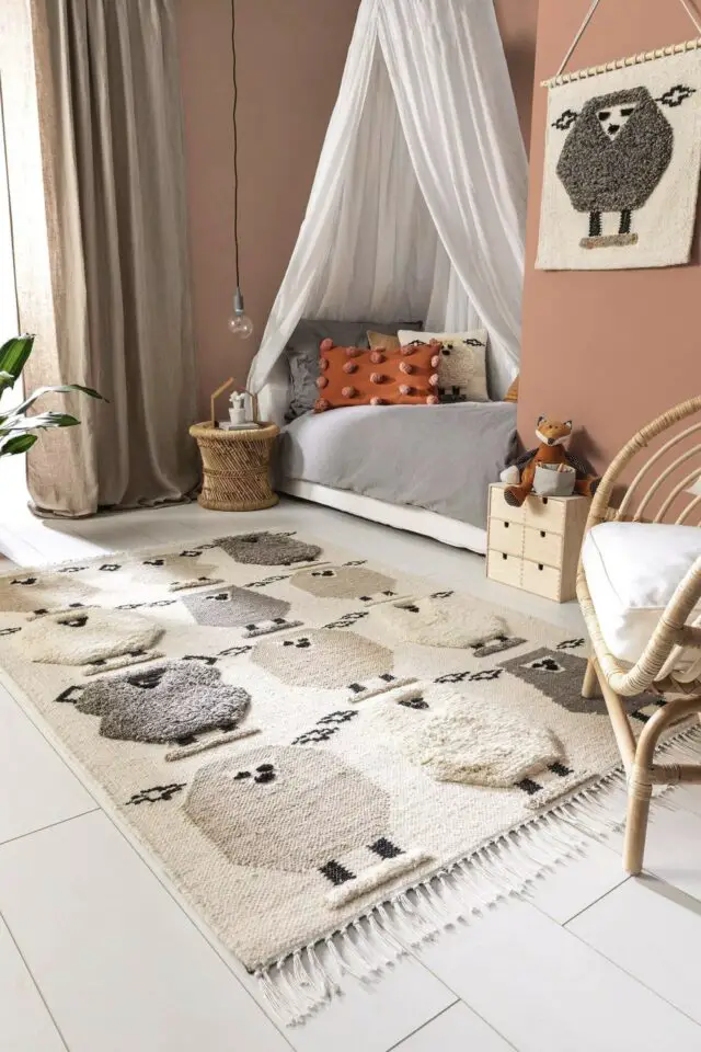 Plusieurs thèmes pour la chambre d'enfant impliquent des animaux. Ce sont des thèmes relatifs à la nature bien souvent. C'est une jolie manière je trouve d'apprendre à votre kid le respect de ce qui l'entoure. Par ailleurs, les enfants montrent généralement une grande curiosité quant aux animaux de tous horizons. La déco de chambre (et le tapis) peut répondre à cet intérêt particulier.