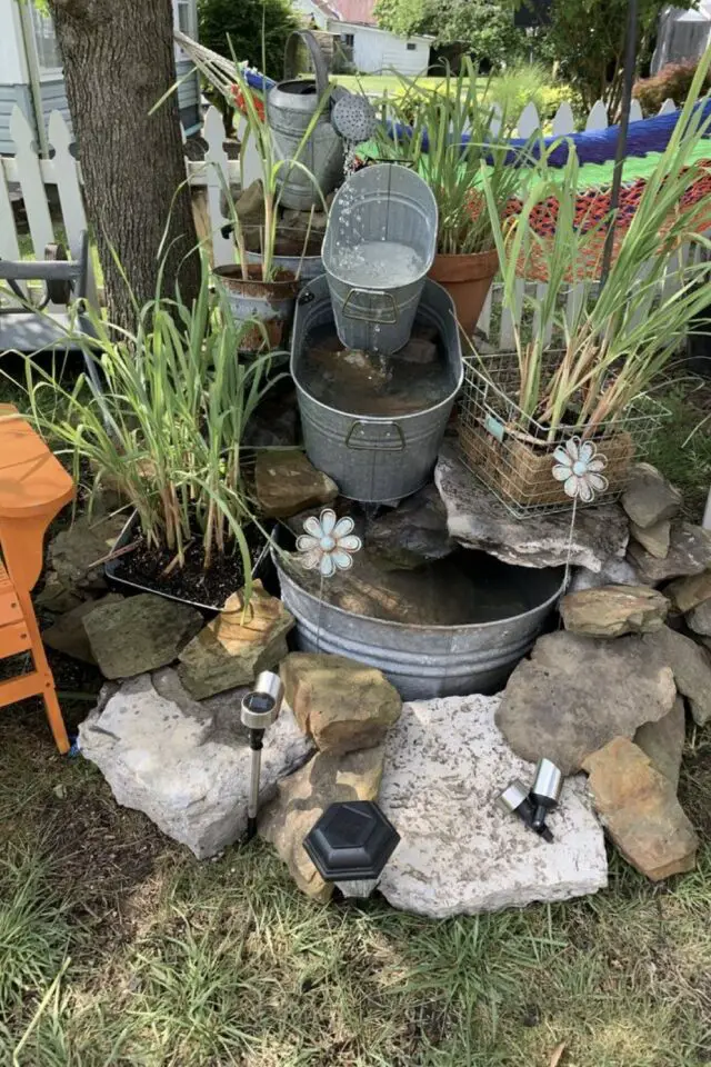 Les fontaines sont de super aménagements extérieurs. L'eau apporte une touche de fraîcheur quand il fait vraiment chaud. La fontaine peut être faite de récup pour le contenant: bassine en métal, bidons ou fûts, vieille baignoire... Avec un peu de bricolage et un système de pompe pour fontaine, vous aurez un aménagement extérieur qui sort de l'ordinaire. Les prix d'une pompe pour fontaine commencent entre 15 et 40€ (pour un débit faible et un petit bassin).