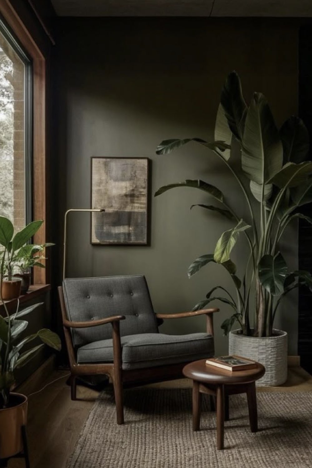 On peut partir aussi sur de verts teintés de marron: kaki, épinard, vert rouille... Même si spontanément, on pourrait les associer avec du marron, on peut aussi les mixer avec du gris, notamment des gris sourds. Elégance et profondeur s'associent ici.