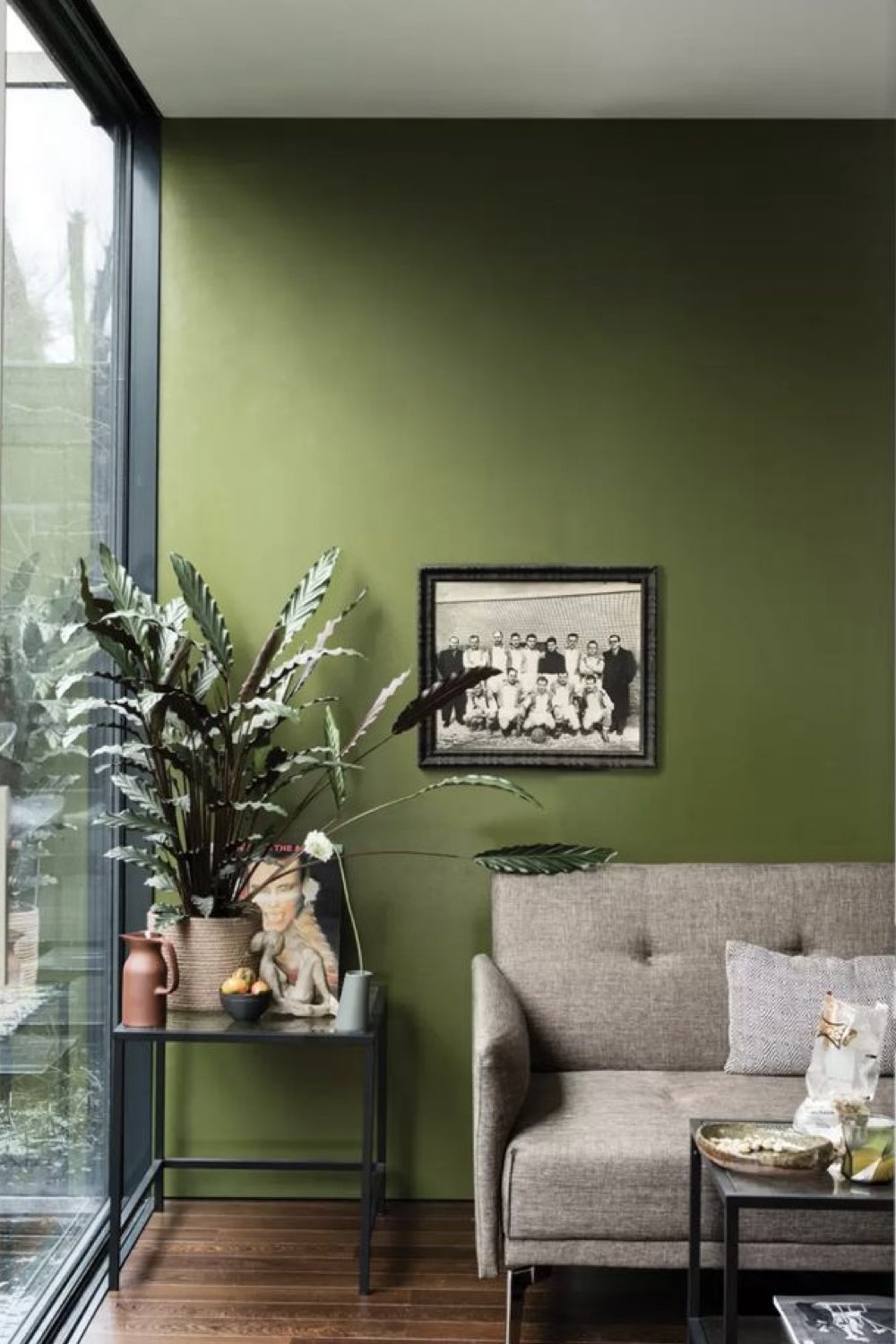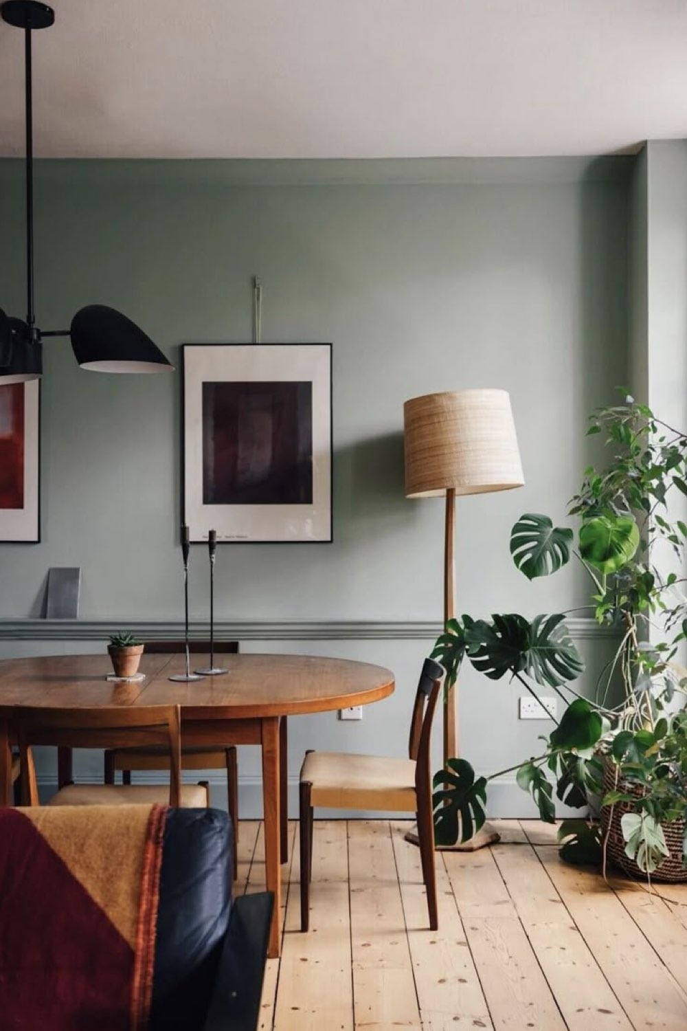 Ces dernières années, on a vu énormément d'inspirations déco dans un vert teinté de gris. Je parle bien entendu du vert sauge qui est très doux. Comme le gris est une part du vert, il est hyper facile de les associer ensemble. On peut aussi bien avoir un vert sauge + gris anthracite ou un vert sauge + gris perle. L'anthracite sera plus cosy, le gris perle plus lumineux.