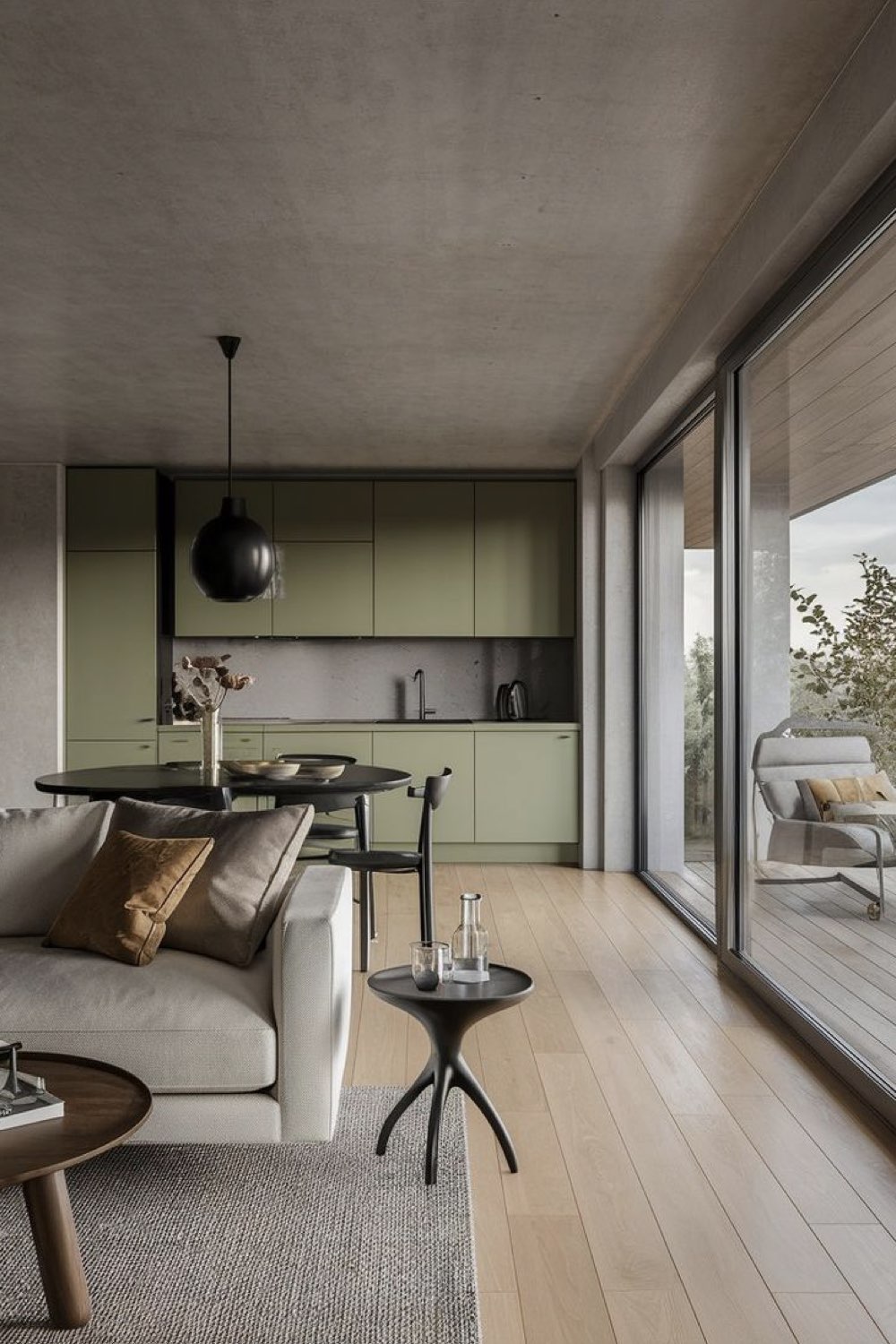 Sommaire - un intérieur en gris et vert