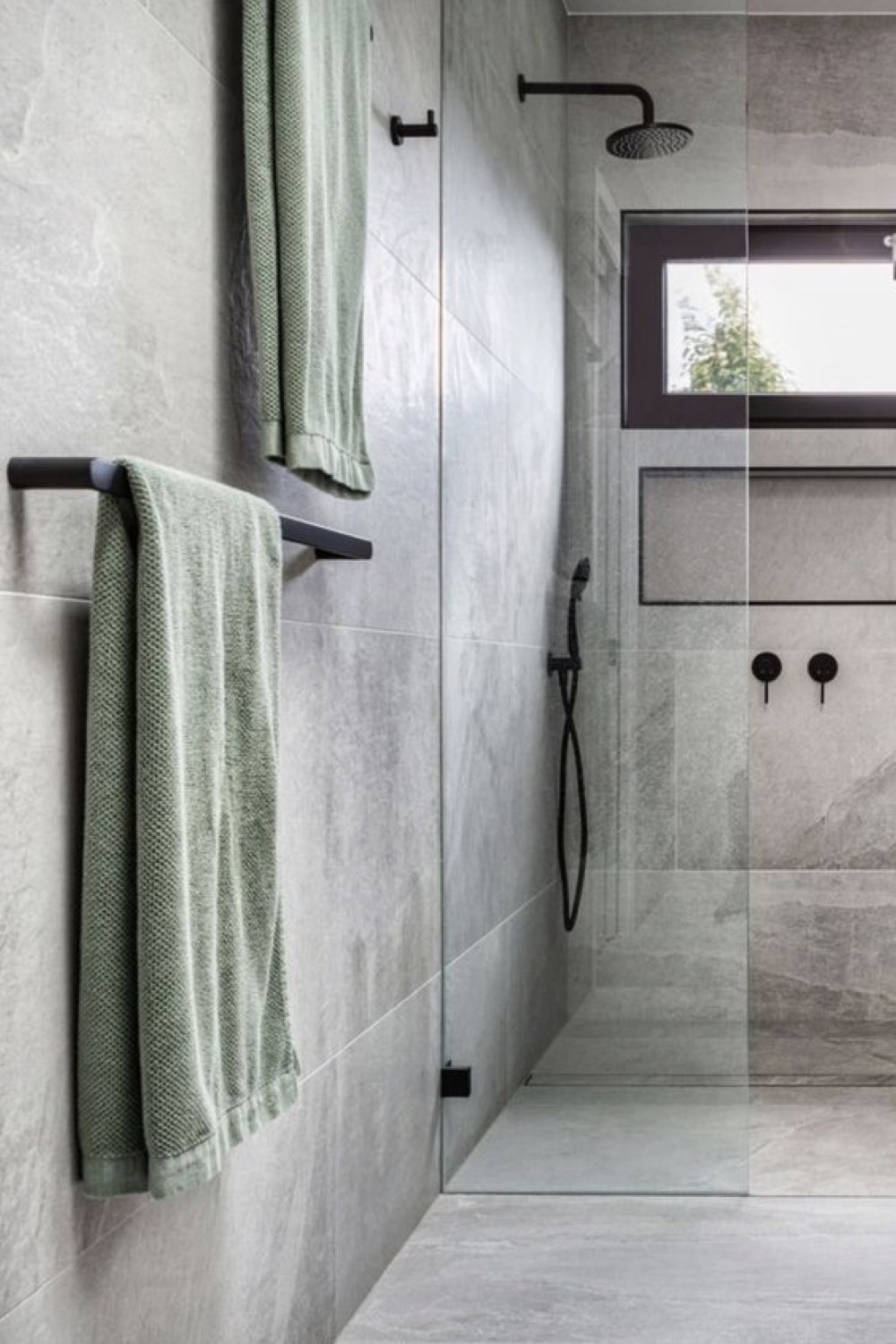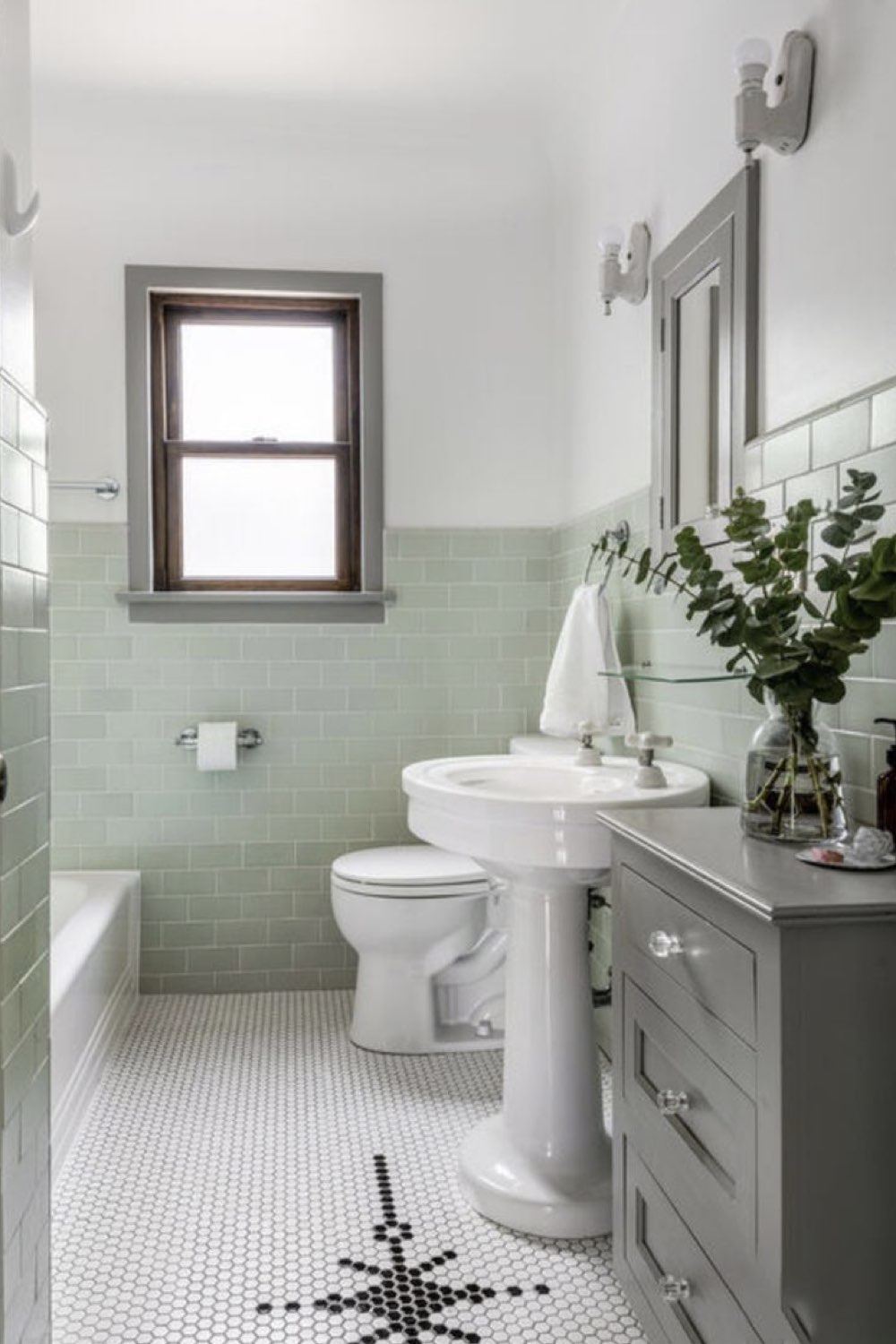 - Combo vert et gris pour personnaliser la salle de bain