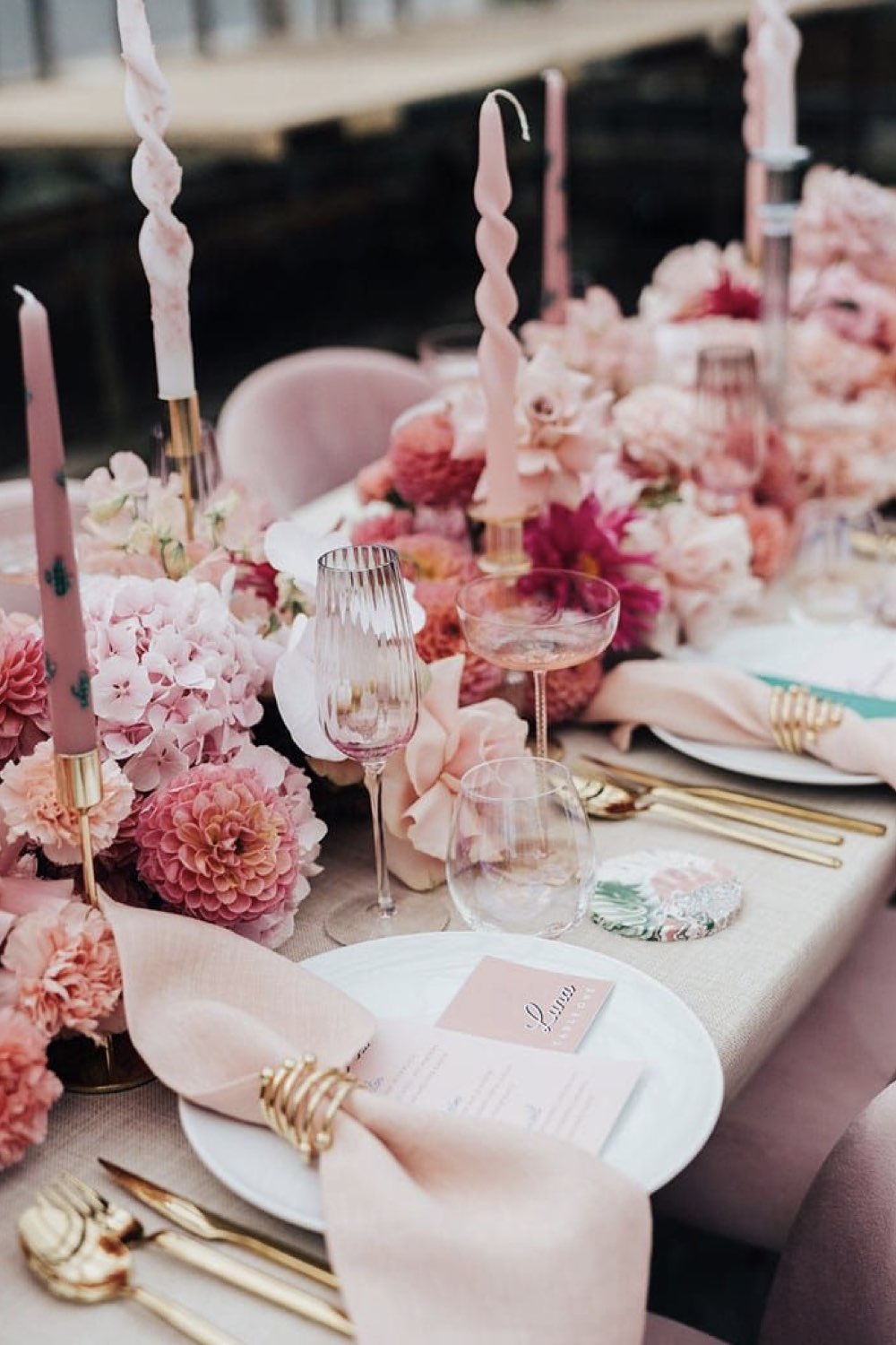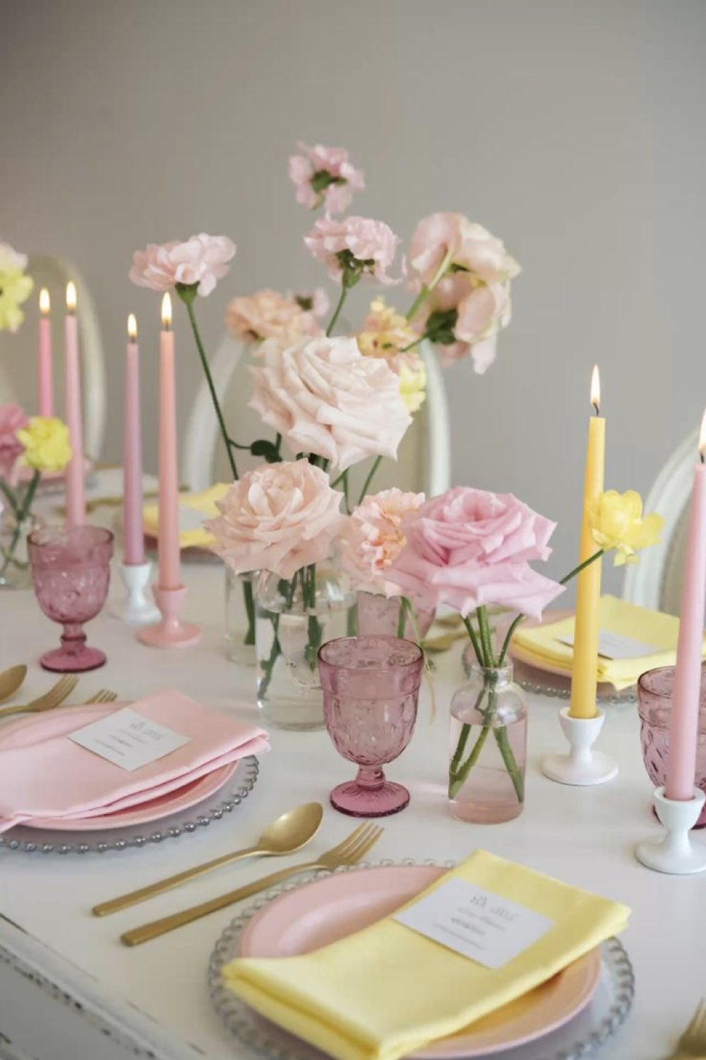 17 • Associer rose et jaune pastel pour une table de mariage moderne et douce