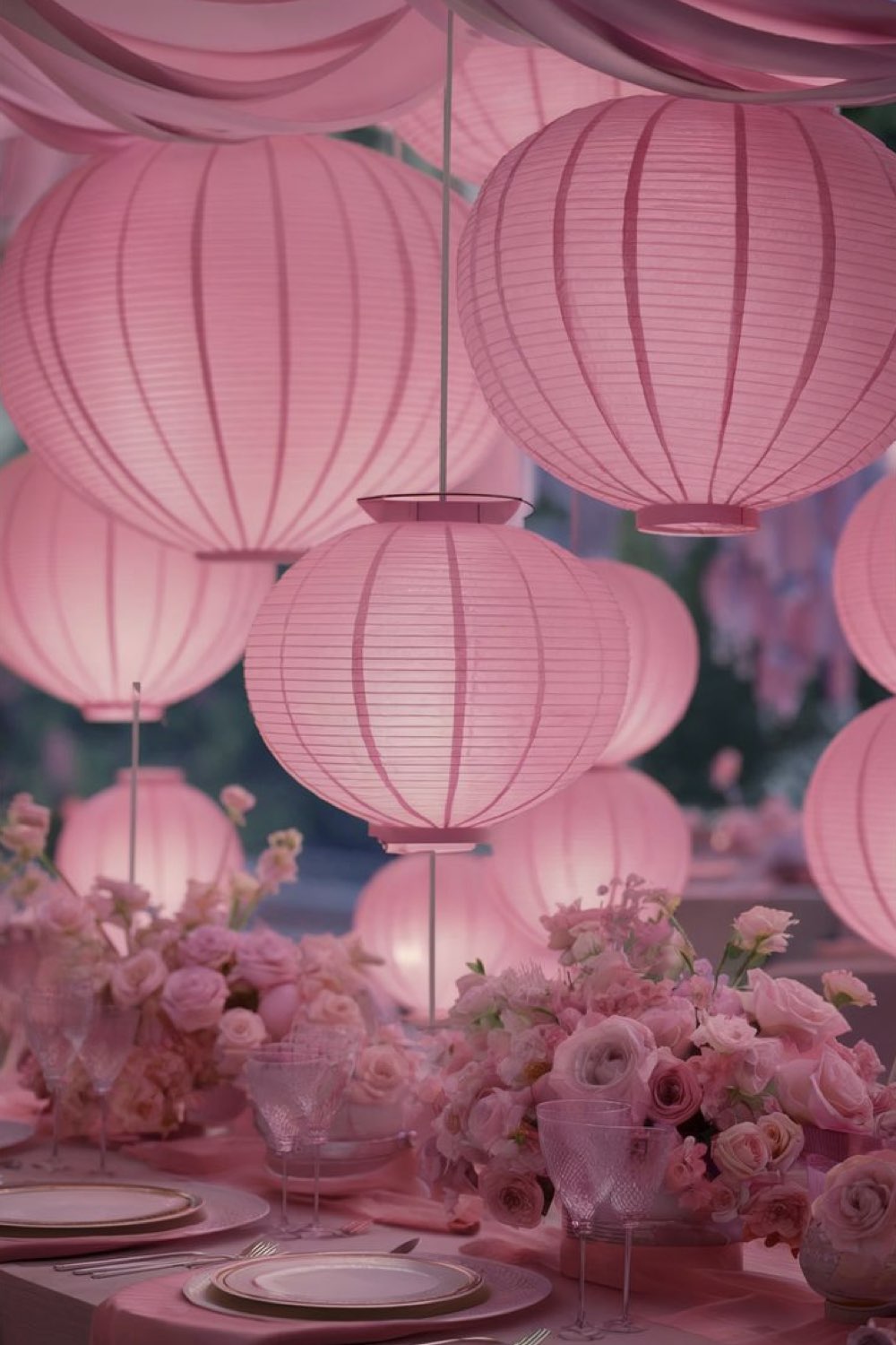 18 • Des lanternes en papier rose pour cacher un plafond disgracieux