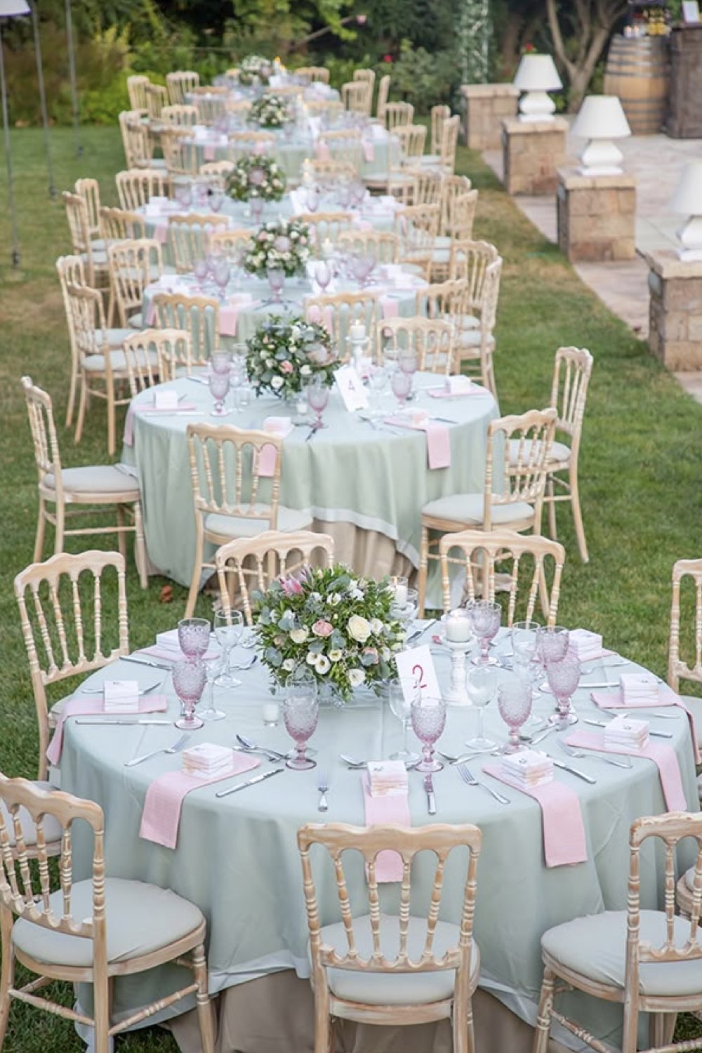 04 • Associer nappe en bleu pastel et serviettes de table roses