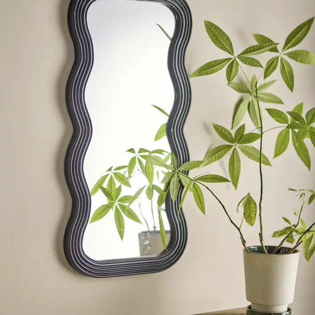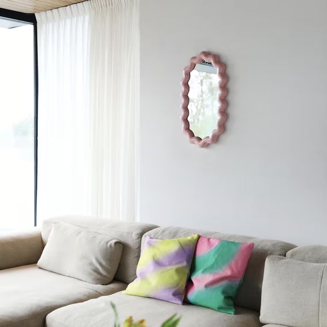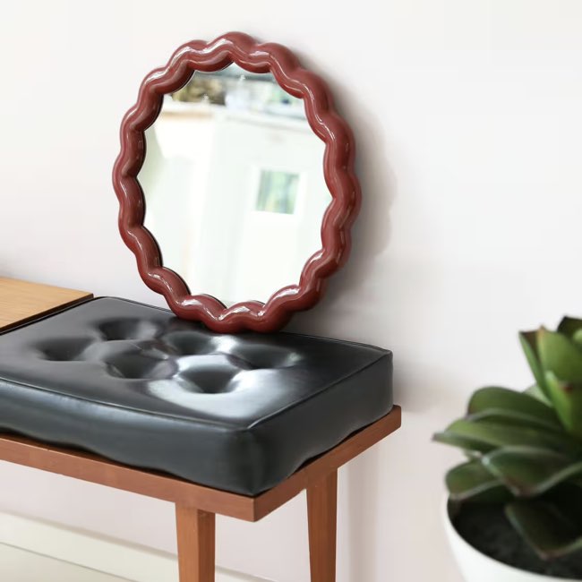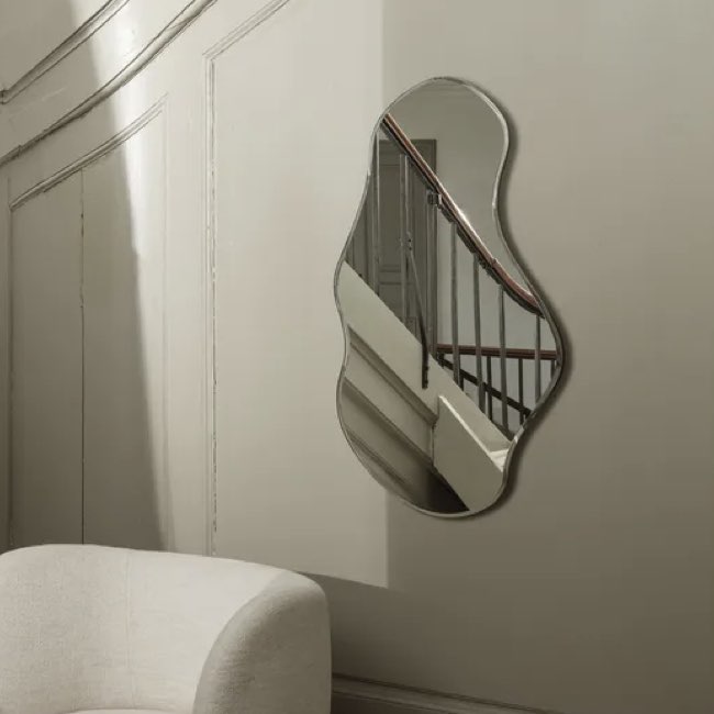 Il y a quelques mois, j'écrivais à propos de la déco des années 2000. Ce n'est pas juste un moment de nostalgie. Les tendances vont et viennent. Et à cette époque, il était fréquent de trouver des miroirs ondulés. En revanche, ils étaient un poil différents de ceux que l'on trouve actuellement. Le miroir était ondulé mais n'avait pas d'encadrement. Les miroirs "vague" étaient souvent vendus en lot. Cette année, le miroir revêt des courbes qui sortent de l'ordinaire mais aussi un encadrement qui lui donne une dimension unique une fois qu'il est accroché au mur.