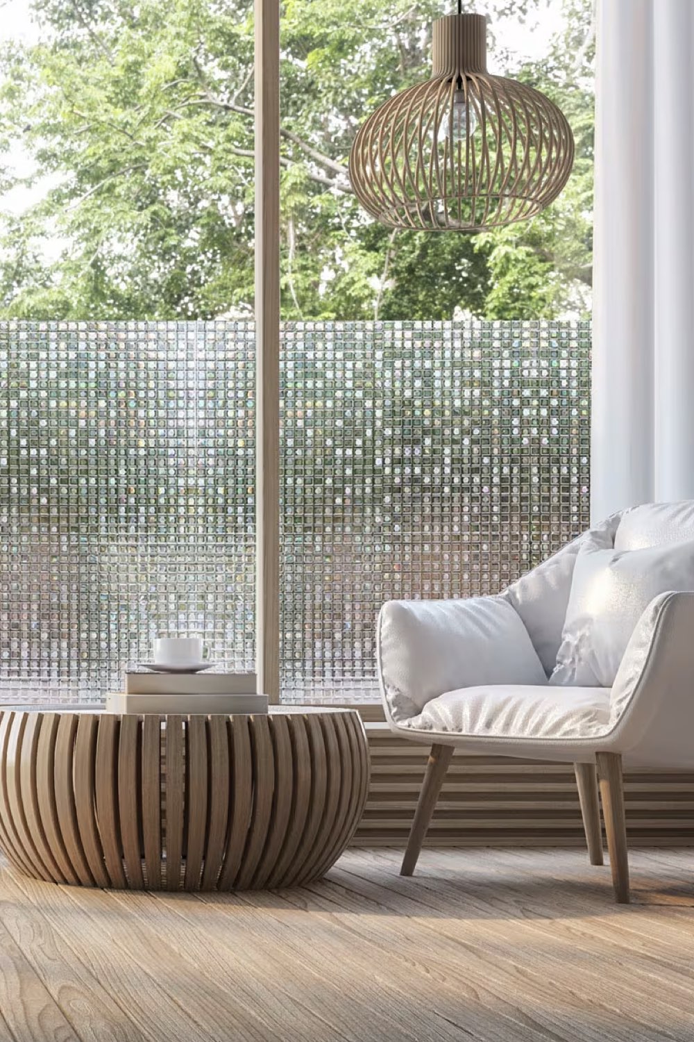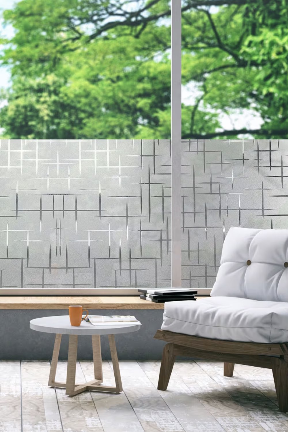 Et pour terminer, on peut aussi penser aux portes vitrées qui peuvent être couvertes (même partiellement) avec un film adhésif. Pratique pour ne pas perdre en luminosité ou en modernité et se protéger en même temps du vis à vis. L'adhésif peut être uni comme avec des motifs. Il peut aussi être combiné avec des rideaux pour habiller la fenêtre.