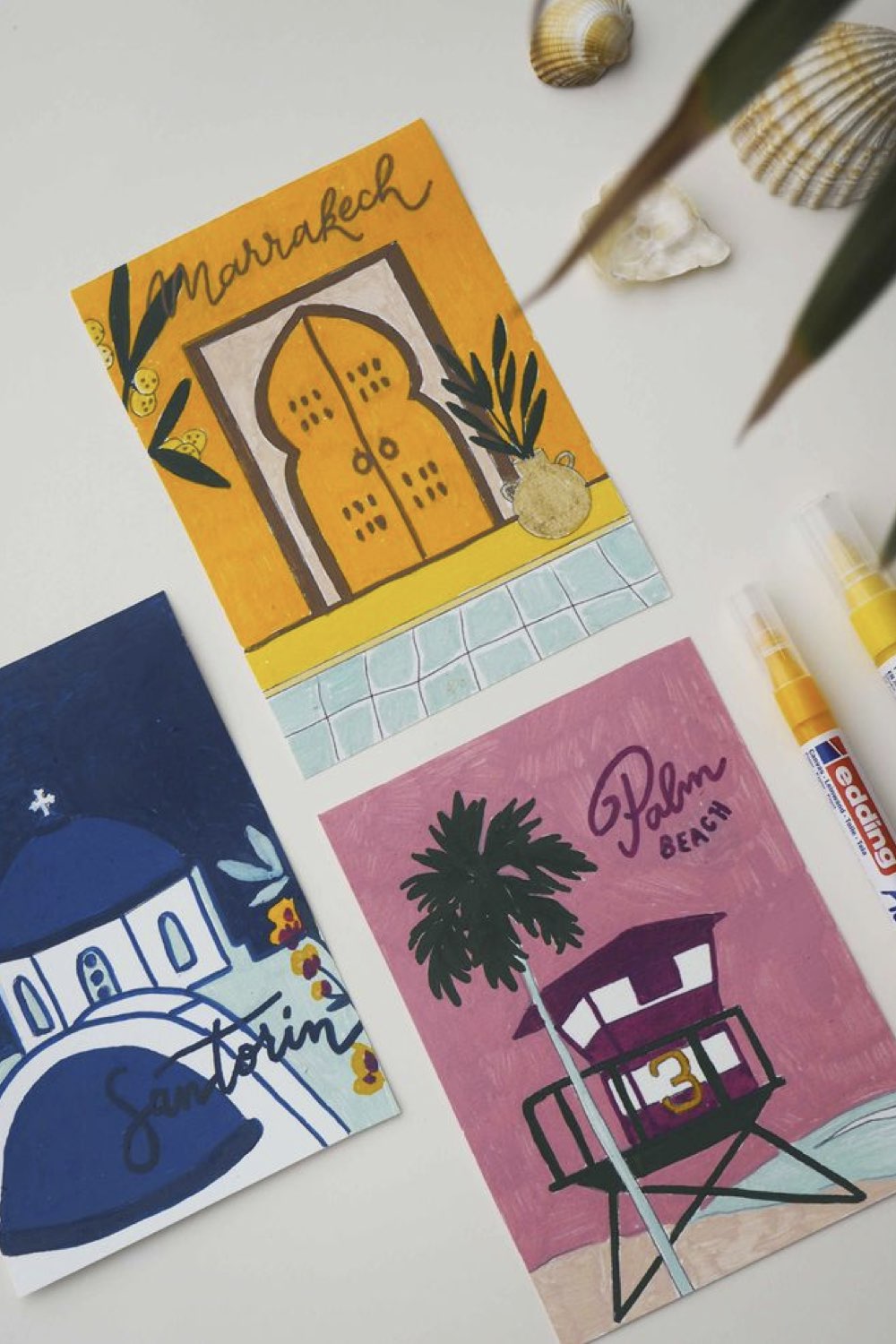 Est-ce que l'art de la correspondance est mort? Je ne pense pas. Il est vrai qu'avec internet, il est plus rare d'envoyer des cartes postales à ses proches pendant les vacances. Mais je sais qu'il y a toujours des gens qui perpétuent cette tradition / cette activité. Si vous avez une âme créative, il est possible que vous ayez envie de créer vous-même vos cartes postales cet été. Et ça tombe bien, c'est le thème de cet article. Je vous propose 10 inspirations pour des cartes postales DIY.