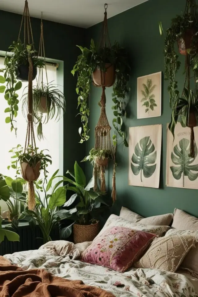Bohème et nature: une touche éclectique pour la chambre à coucher