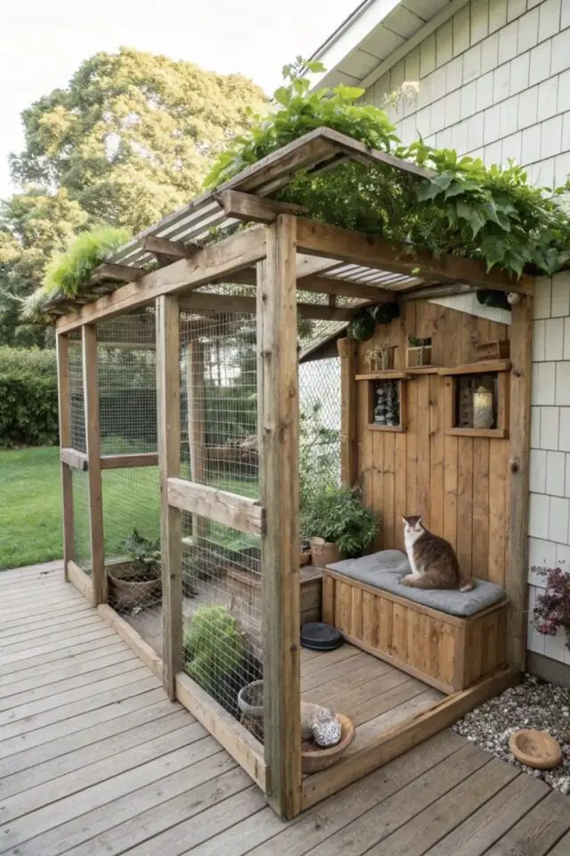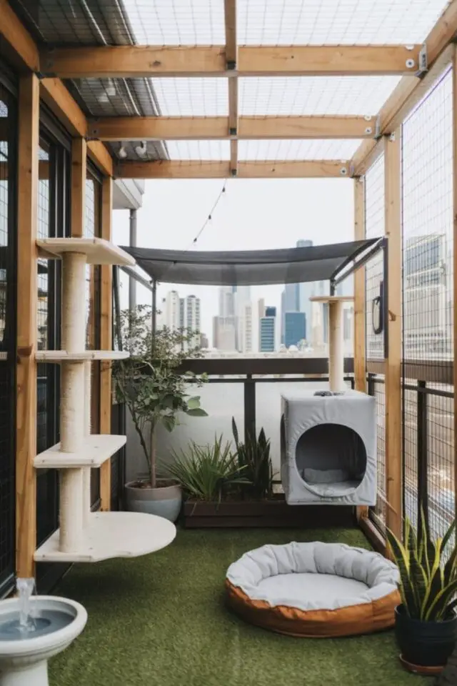 Un enclos pour que le chat profite lui aussi de la terrasse